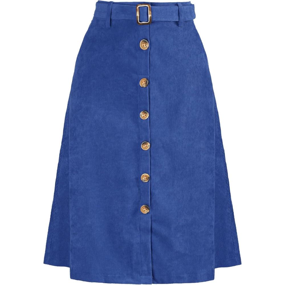 imageAllegra K Womens High Waist Button Front ALine Belted Corduroy Midi SkirtRoyal Blue