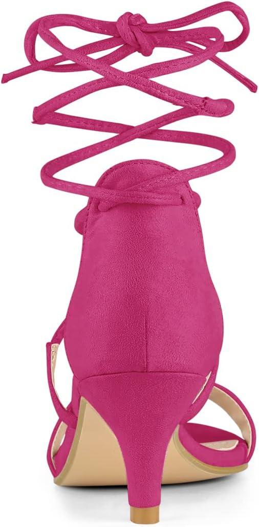 Allegra K Women’s Kitten Heel Lace Up Open Toe Sandals(Hot Pink)