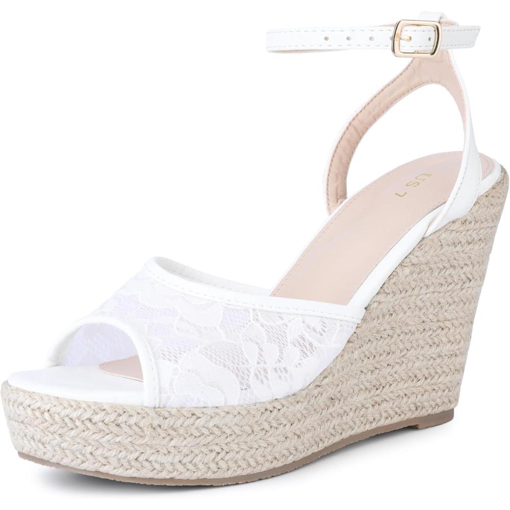 Allegra K Women's Lace Ankle Strap Platform Heel Espadrille Wedge Heels Sandals(White)