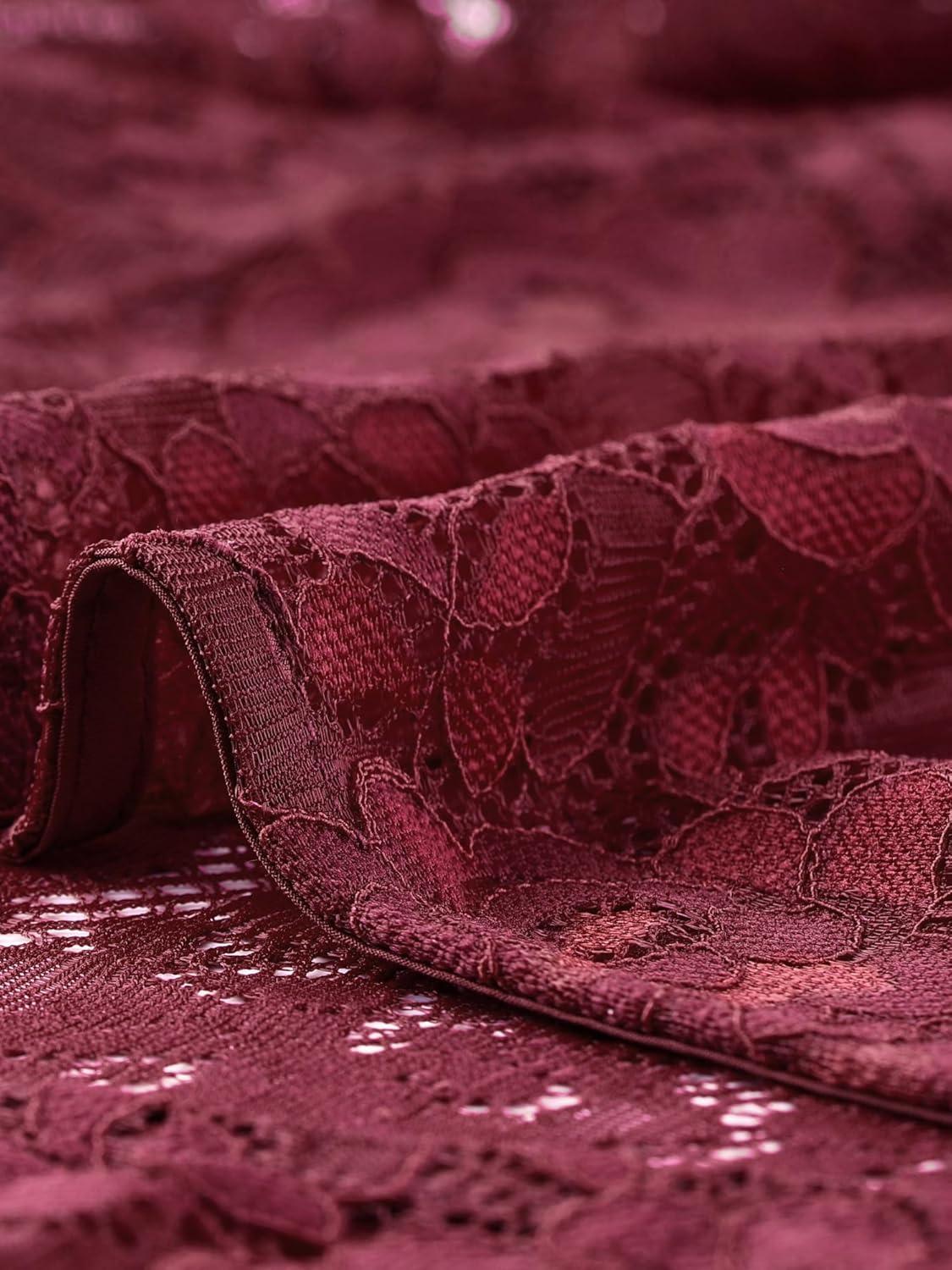 imageAllegra K Womens Lace Cardigan Open Front Lace Shrug Elegant Sheer Floral Cropped Bolero Lace TopsClaret Red