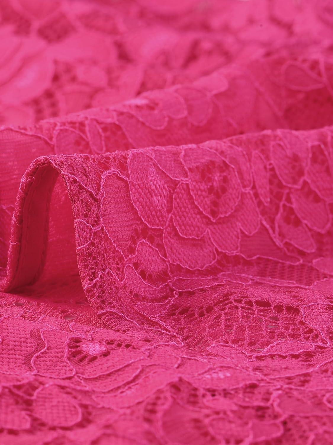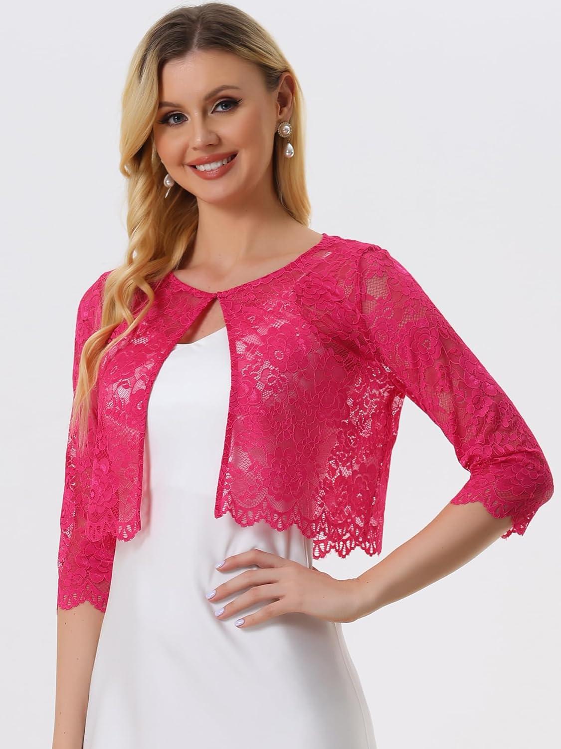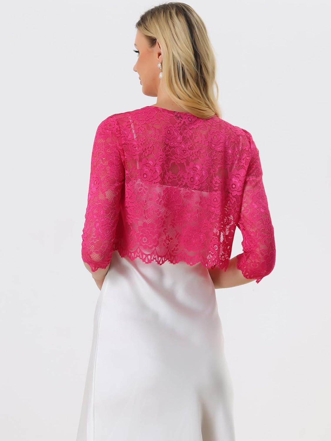 Allegra K Women’s Lace Cardigan Open Front Lace Shrug Elegant Sheer Floral Cropped Bolero Lace Tops(Hot Pink)