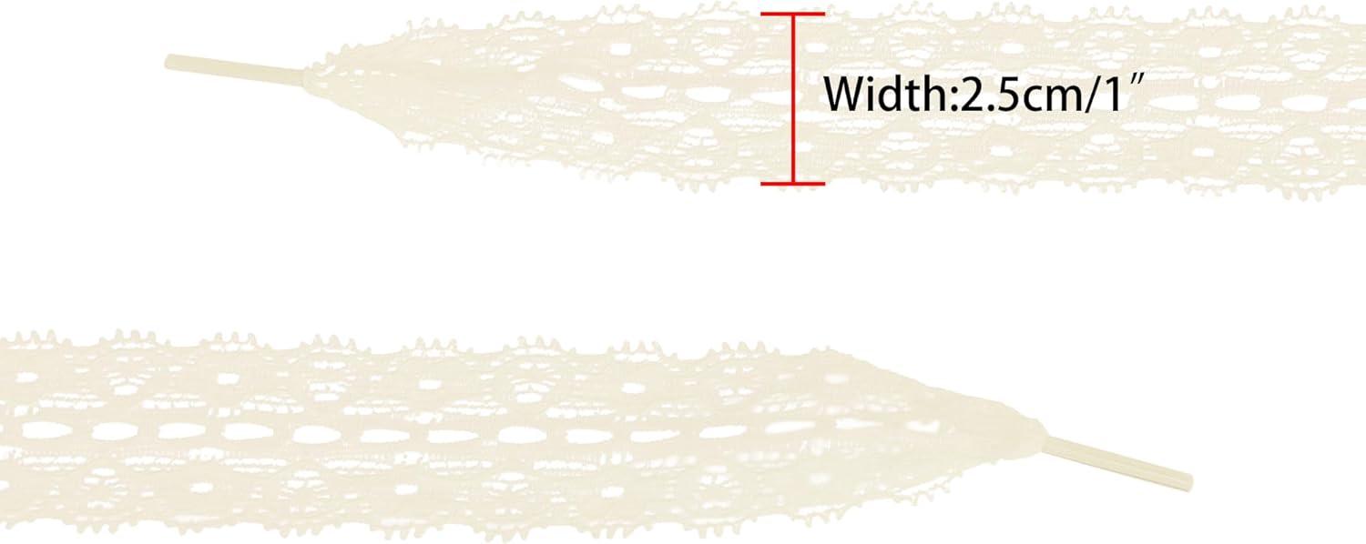 Allegra K Women’s Lace Hollow Flower Embroidered Shoestrings Extra Wide Flat Shoe Laces for Sneakers 2 Pairs(Beige)