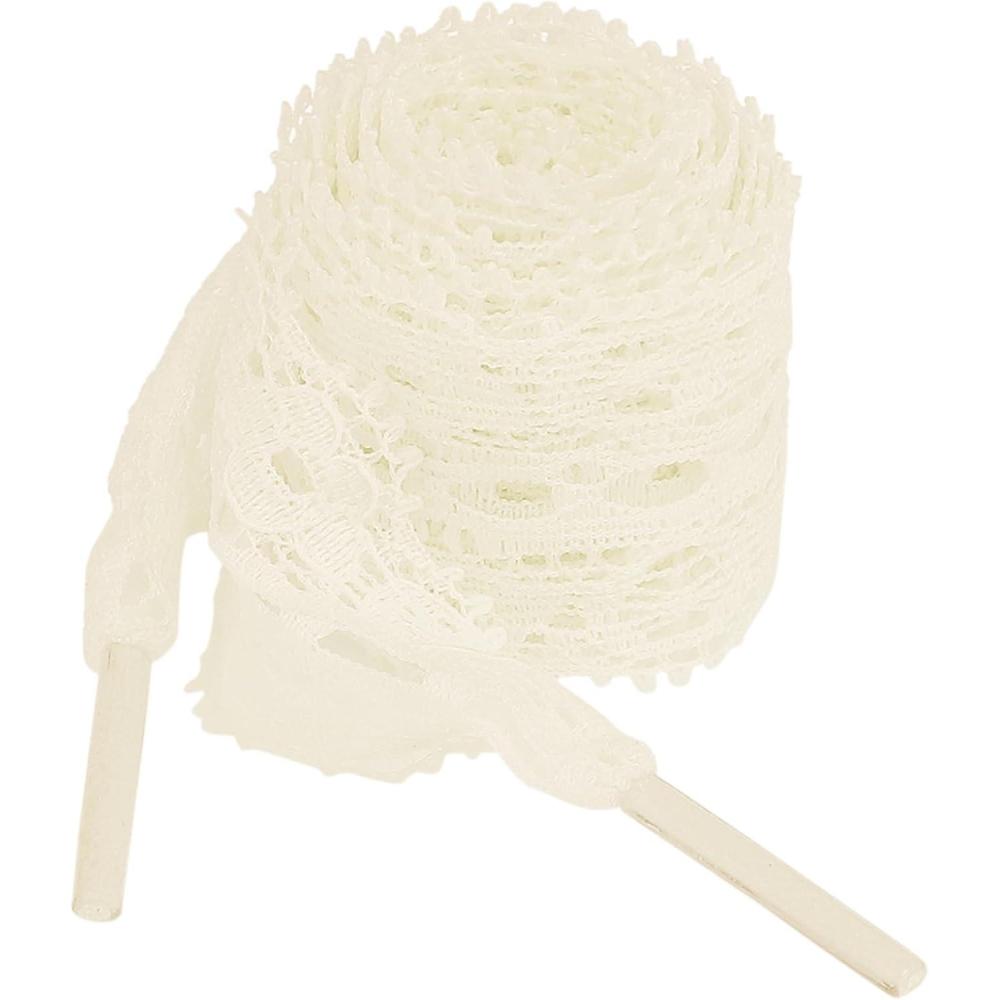 Allegra K Women's Lace Hollow Flower Embroidered Shoestrings Extra Wide Flat Shoe Laces for Sneakers 2 Pairs(Beige)