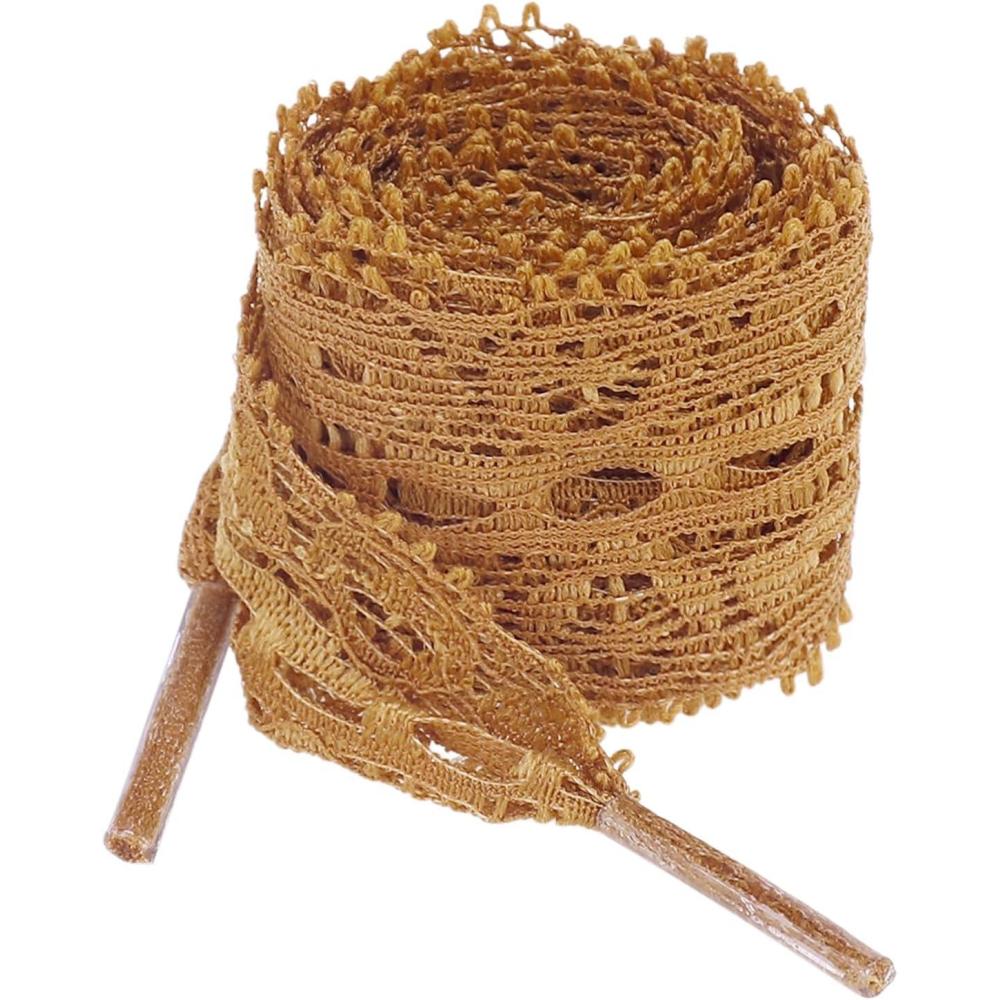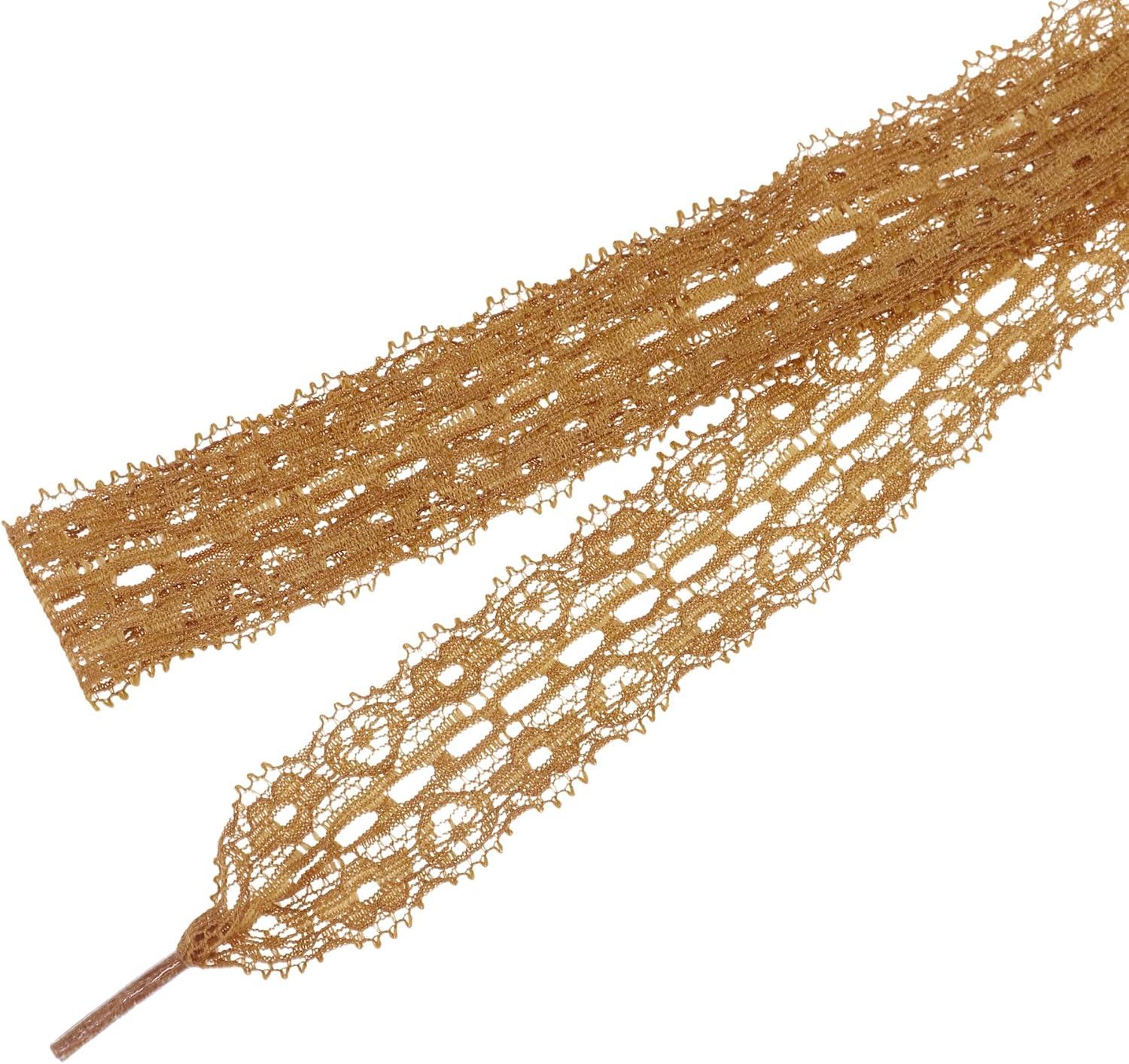 Allegra K Women's Lace Hollow Flower Embroidered Shoestrings Extra Wide Flat Shoe Laces for Sneakers 2 Pairs(Brown)