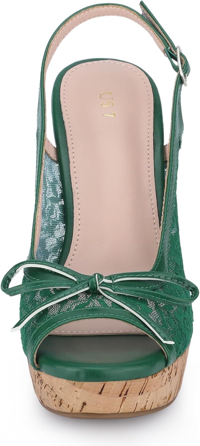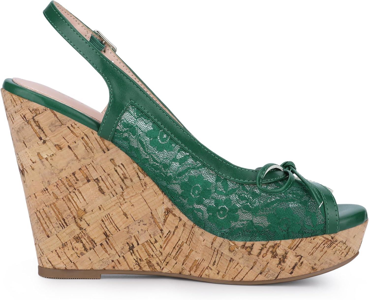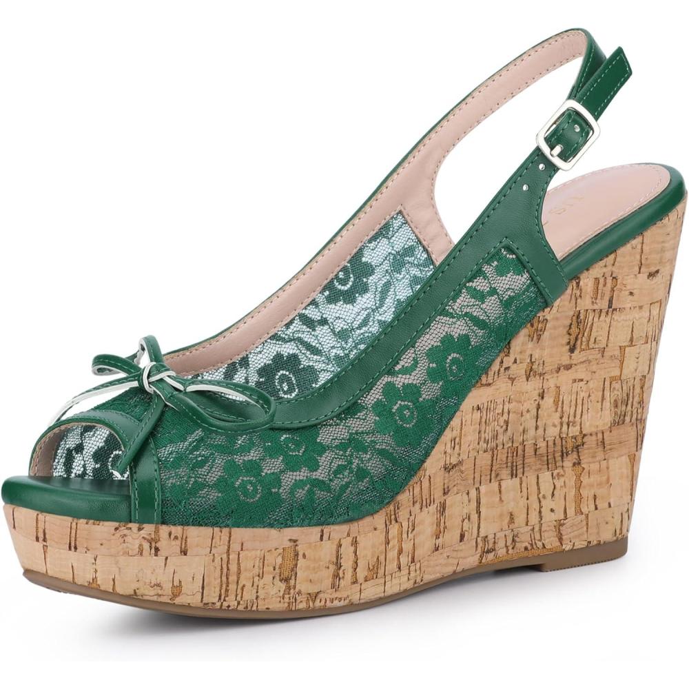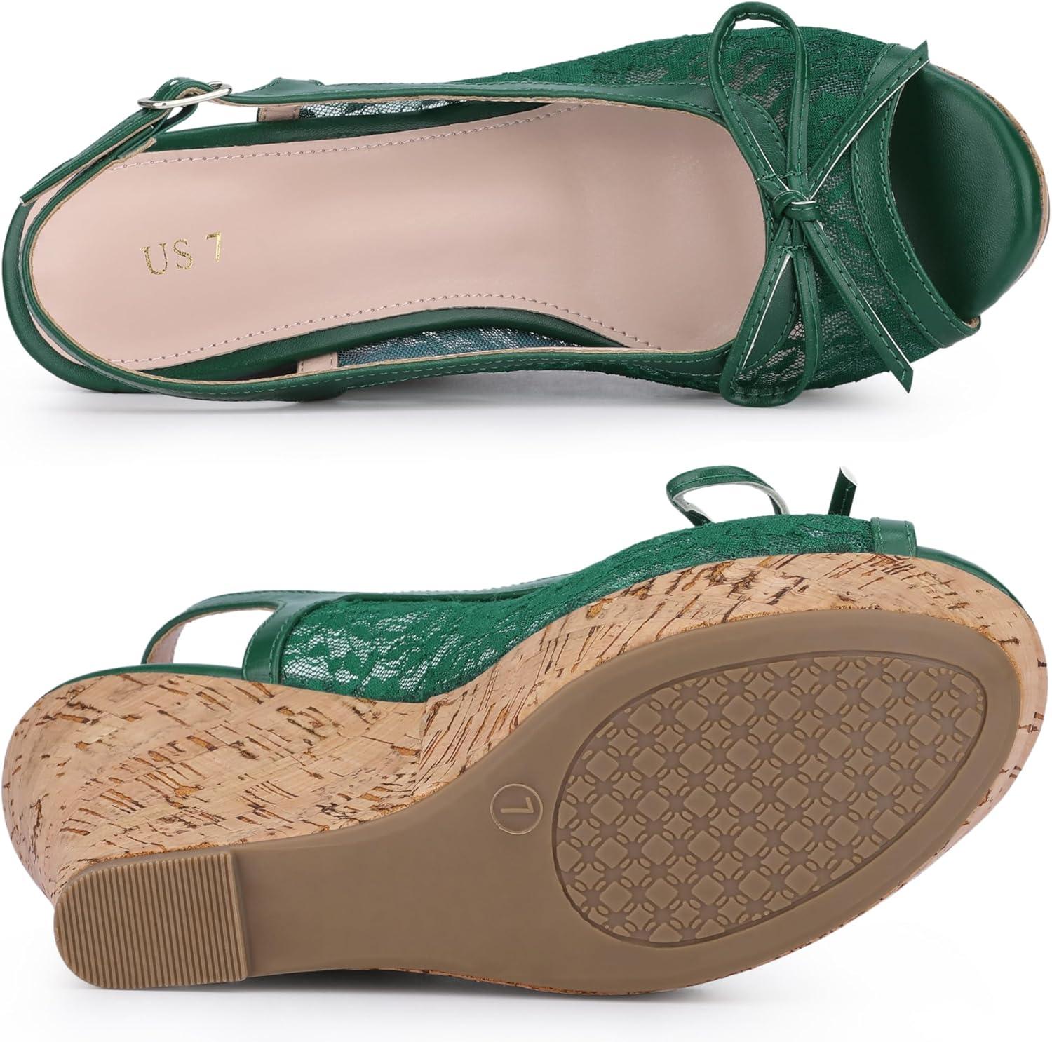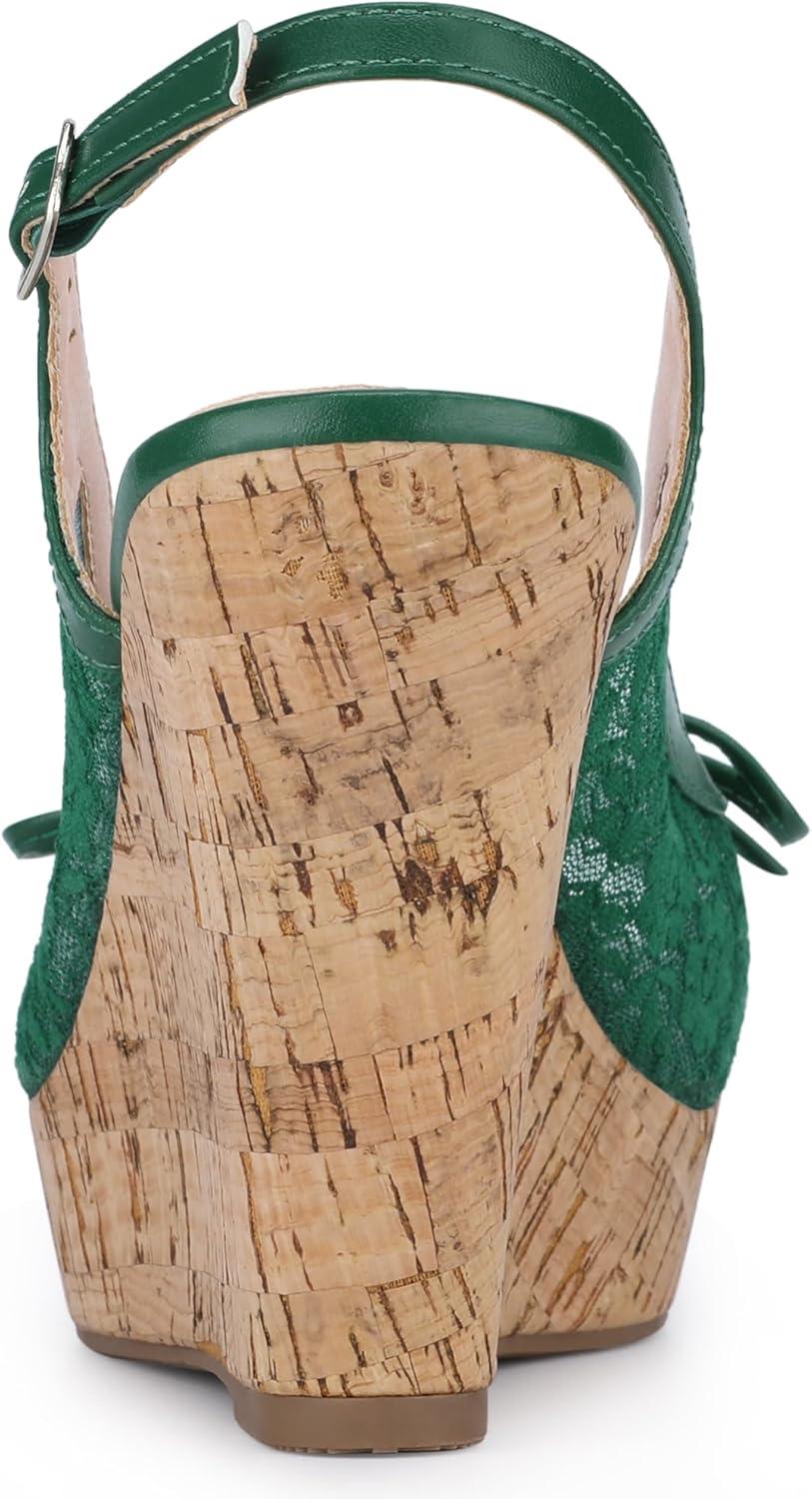 Allegra K Women's Lace Platform Wedges Wedge Heel Sandals(Dark Green)