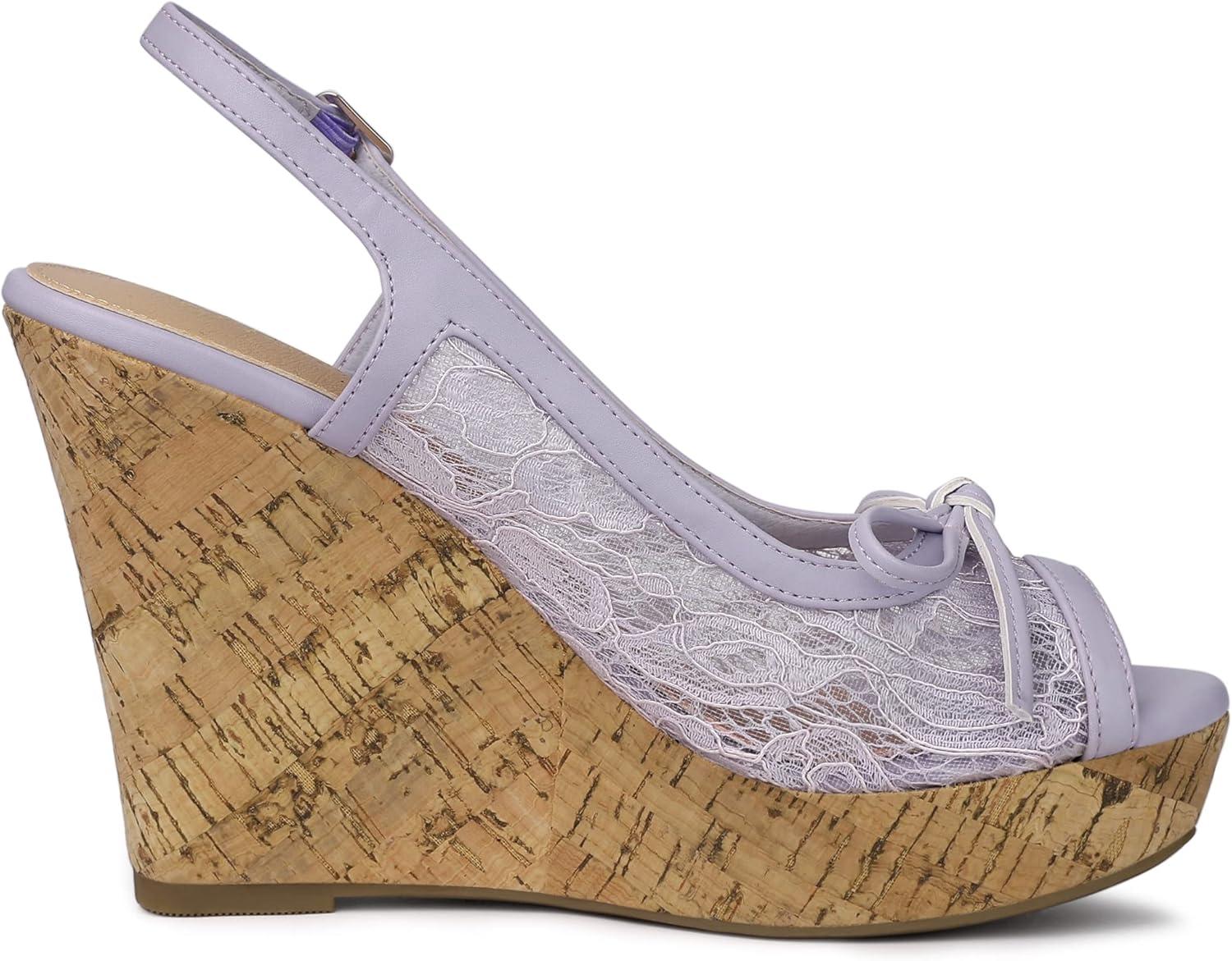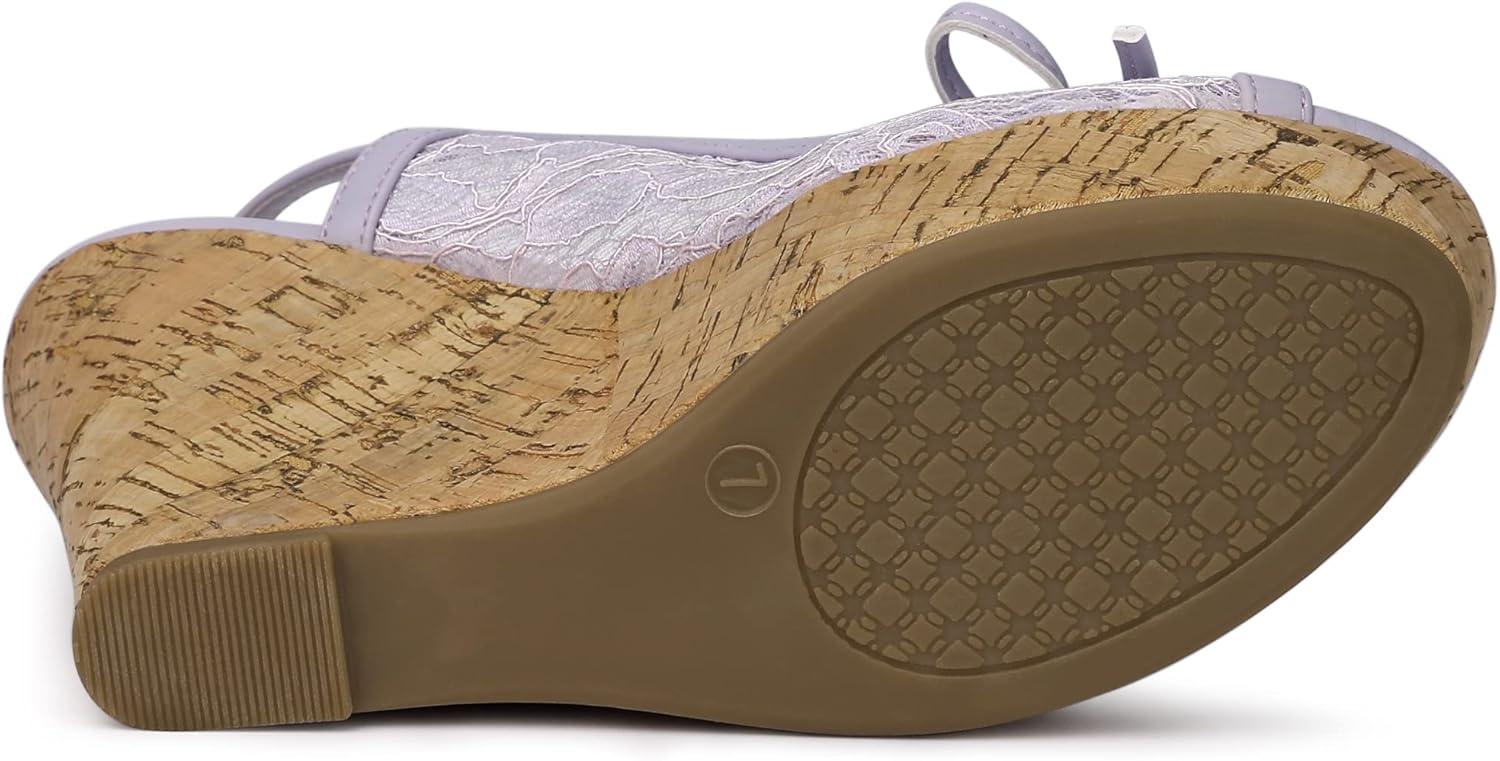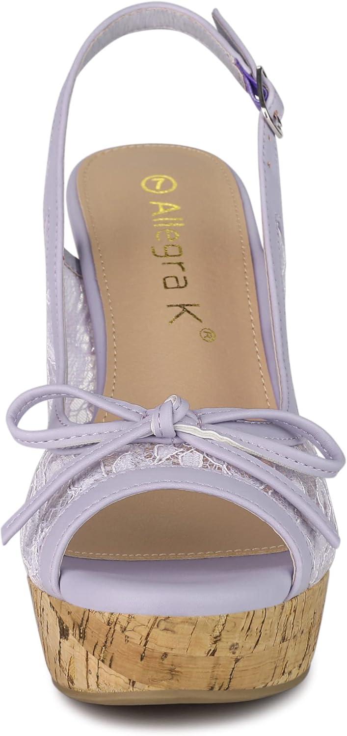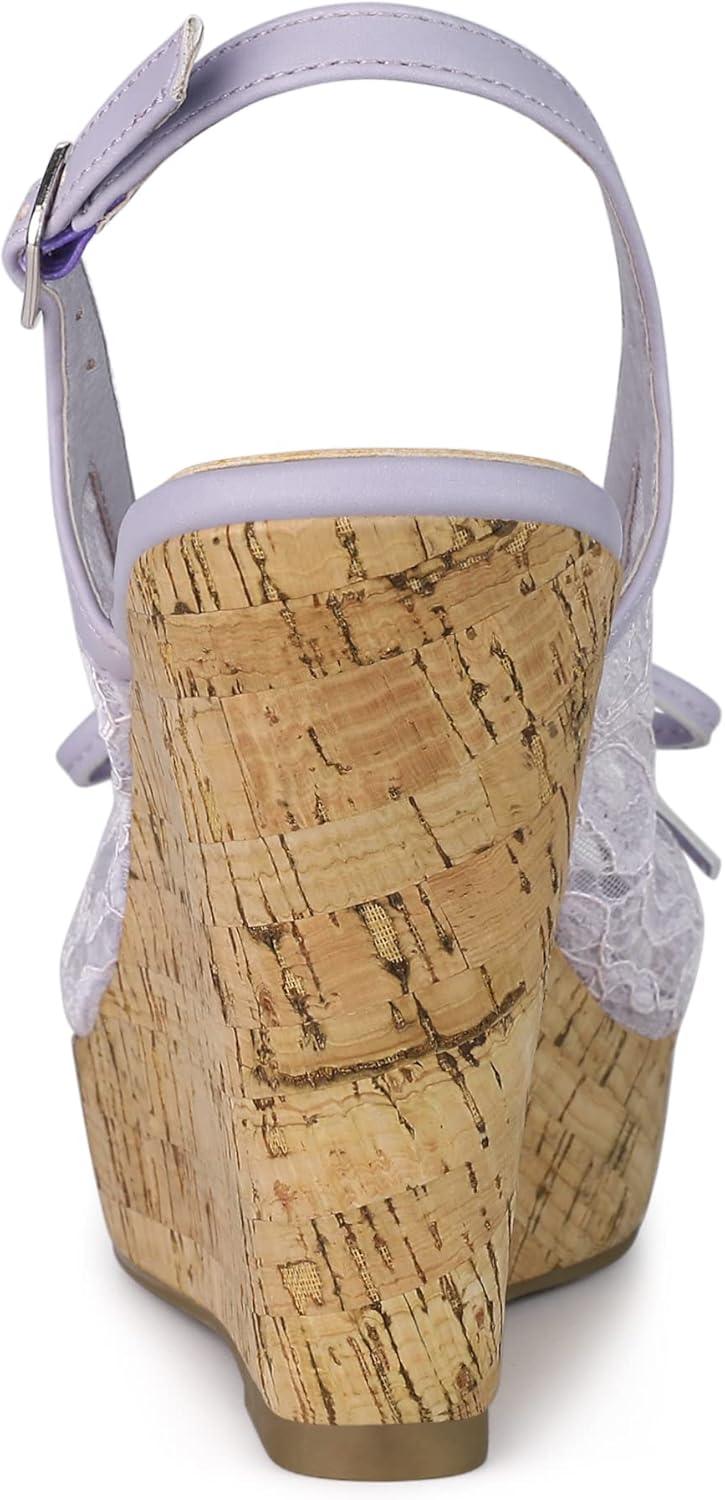 Allegra K Women’s Lace Platform Wedges Wedge Heel Sandals(Purple Flower)