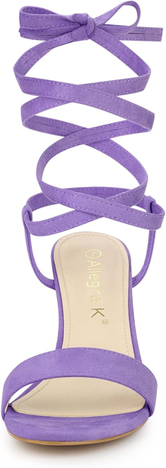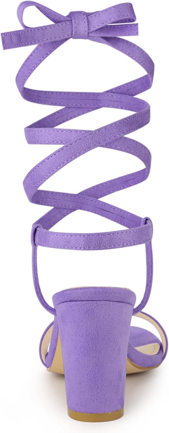 Allegra K Women’s Lace Up Chunky Heels Sandals(Purple)