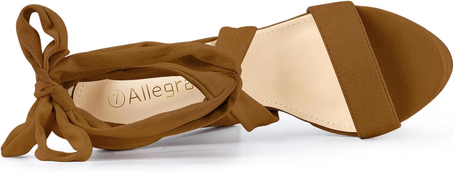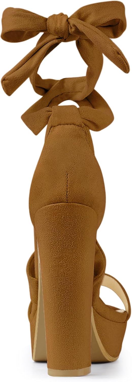 Allegra K Women’s Lace Up Platform Block Heel Sandals(Brown)
