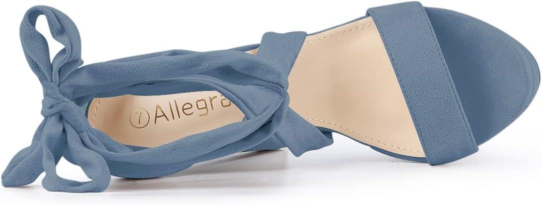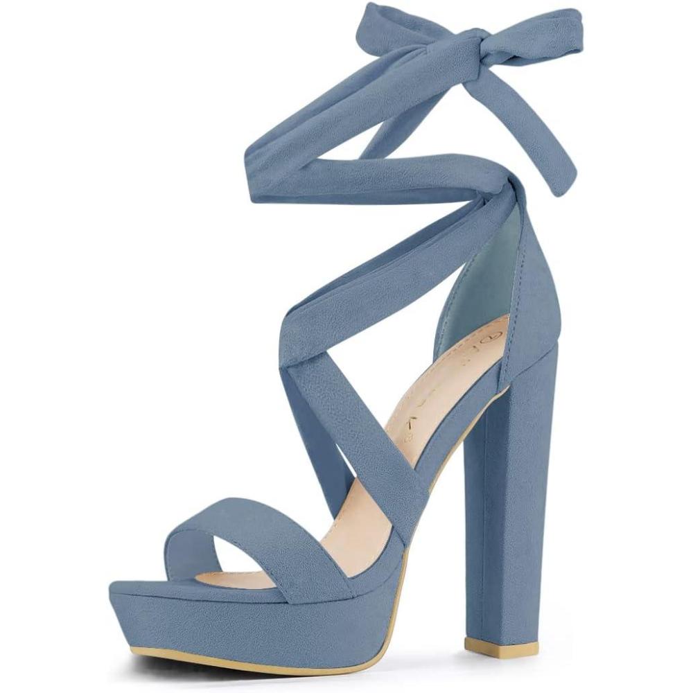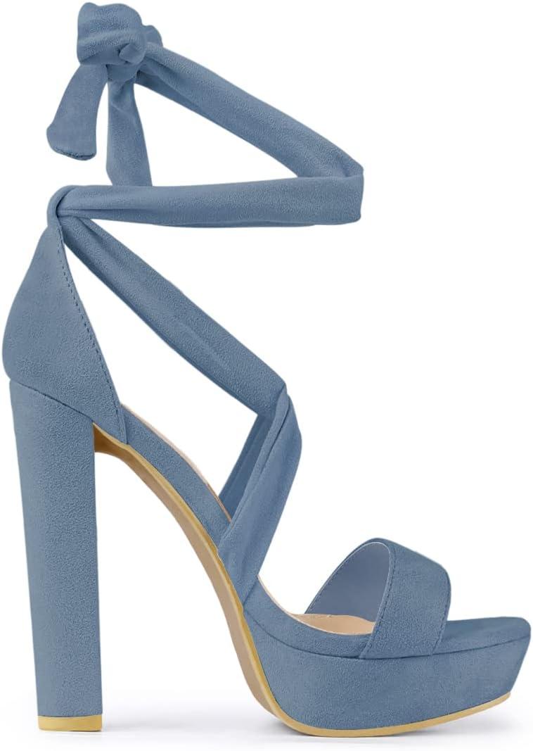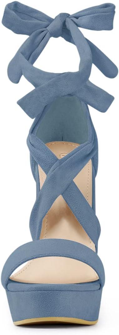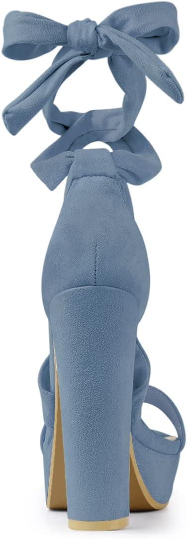 Allegra K Women’s Lace Up Platform Block Heel Sandals(Haze Blue)