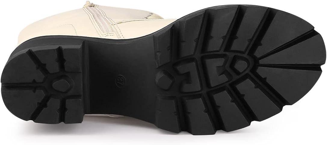 Get your hands on our newest Allegra K Women’s Lace Up Platform Chunky Heel Mid Calf Combat Boots Halloween Boots(Beige) and enjoy a limited-time discount offer.