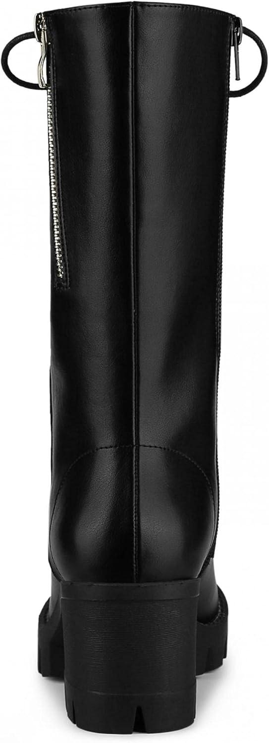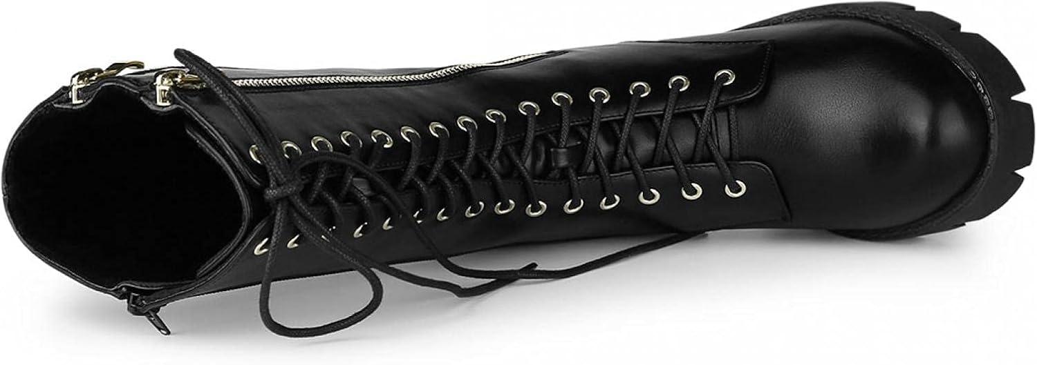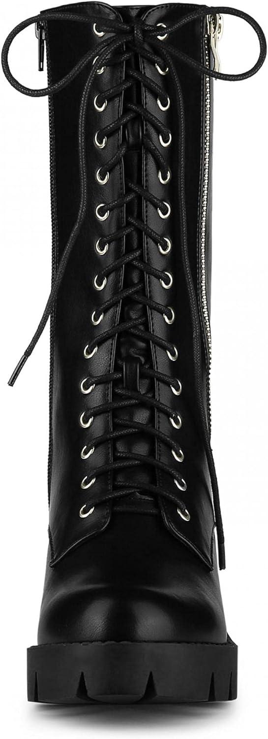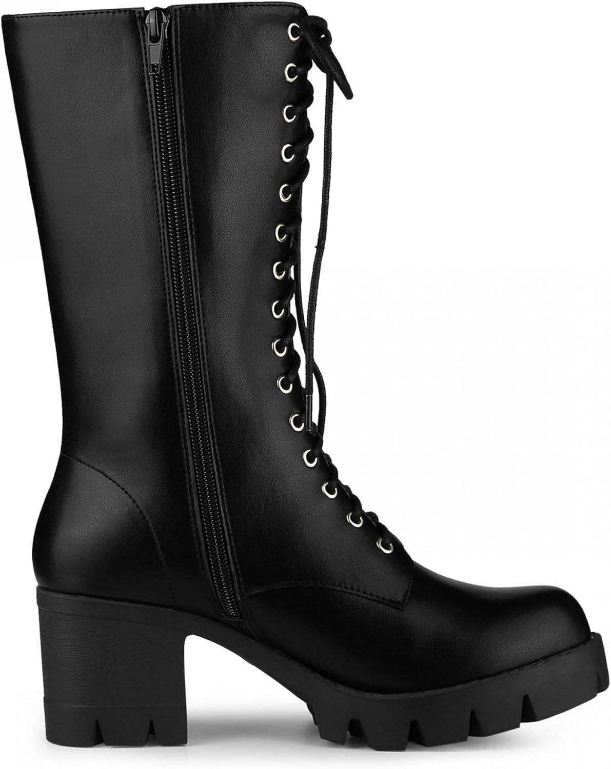 Allegra K Women’s Lace Up Platform Chunky Heel Mid Calf Combat Boots Halloween Boots(Black)