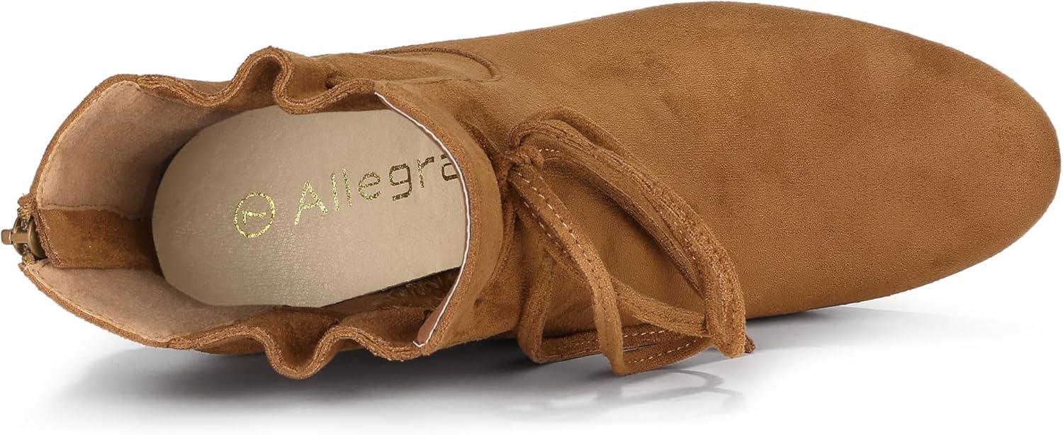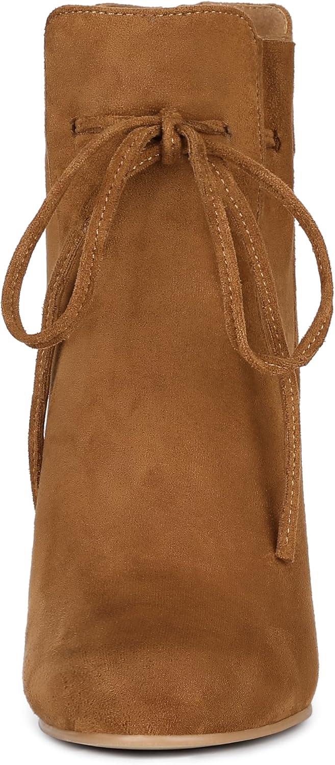 Allegra K Women’s Lace Up Round Toe Drawstring Block Heel Ankle Boots(Brown)