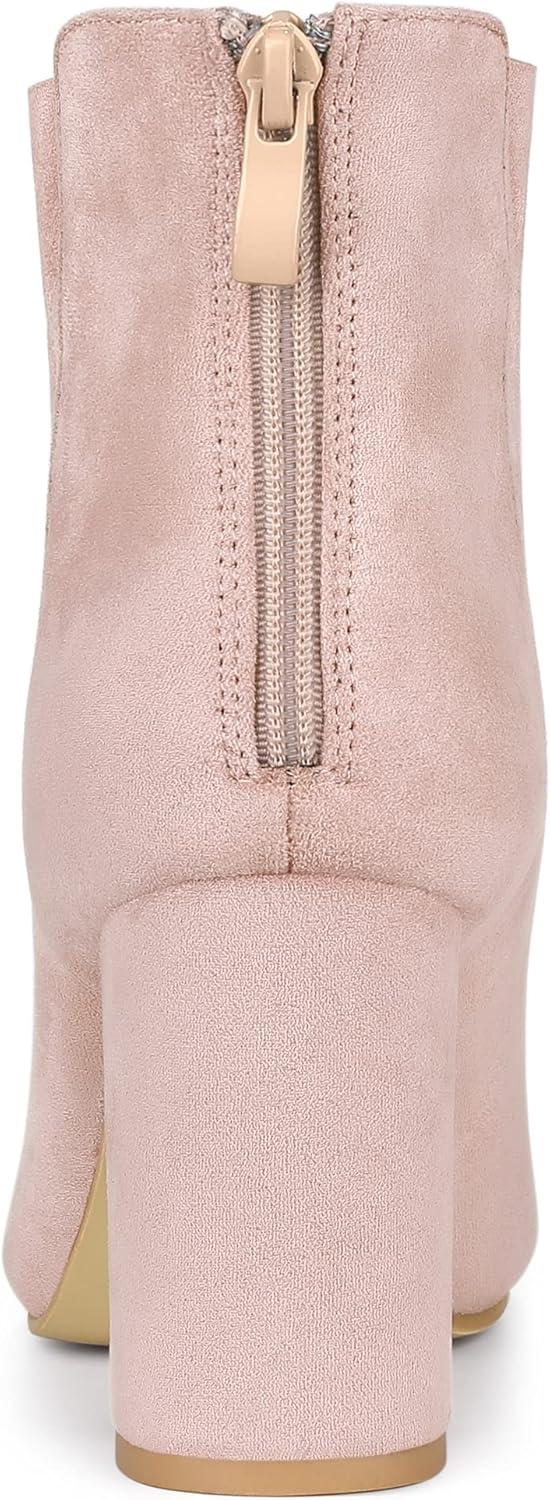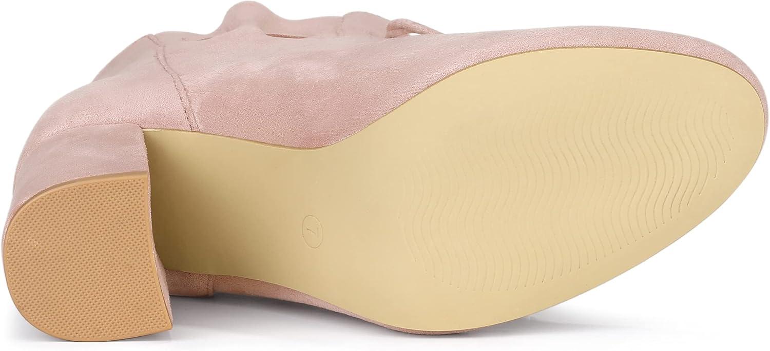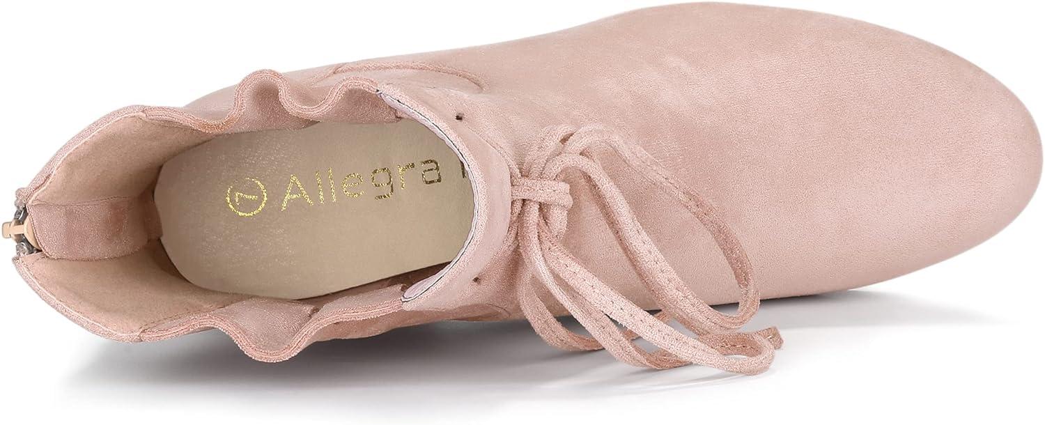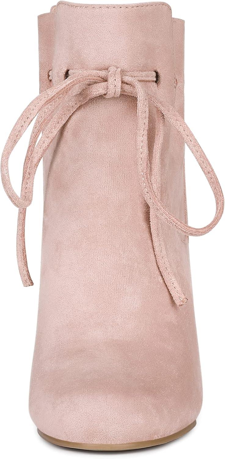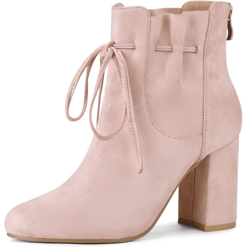 Allegra K Women’s Lace Up Round Toe Drawstring Block Heel Ankle Boots(Dust Pink)