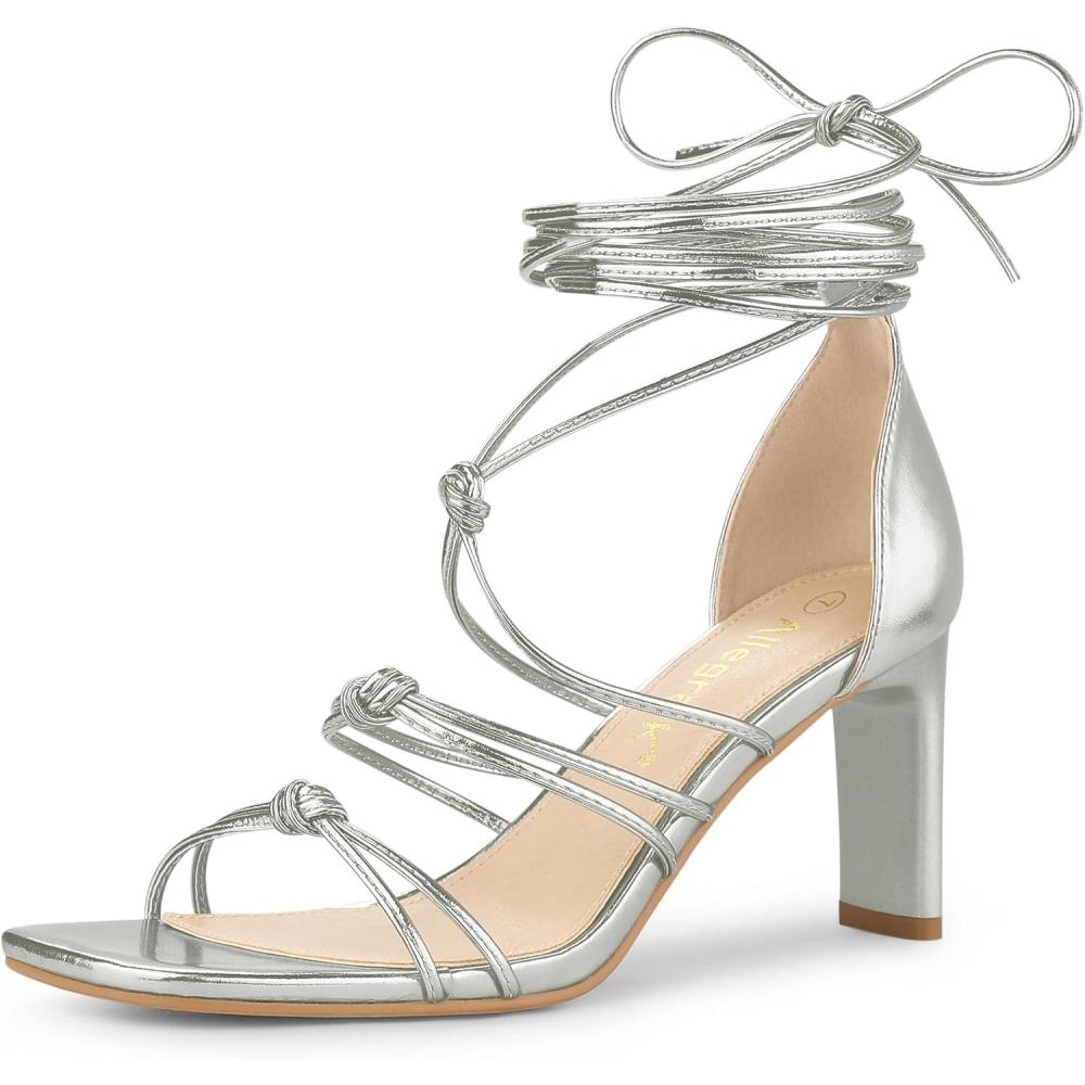 Allegra K Women’s Lace Up Strappy Chunky High Heels Sandals(Silver)