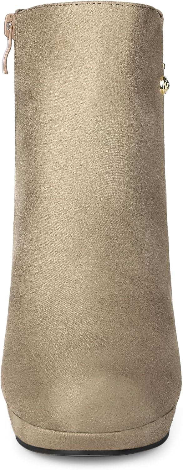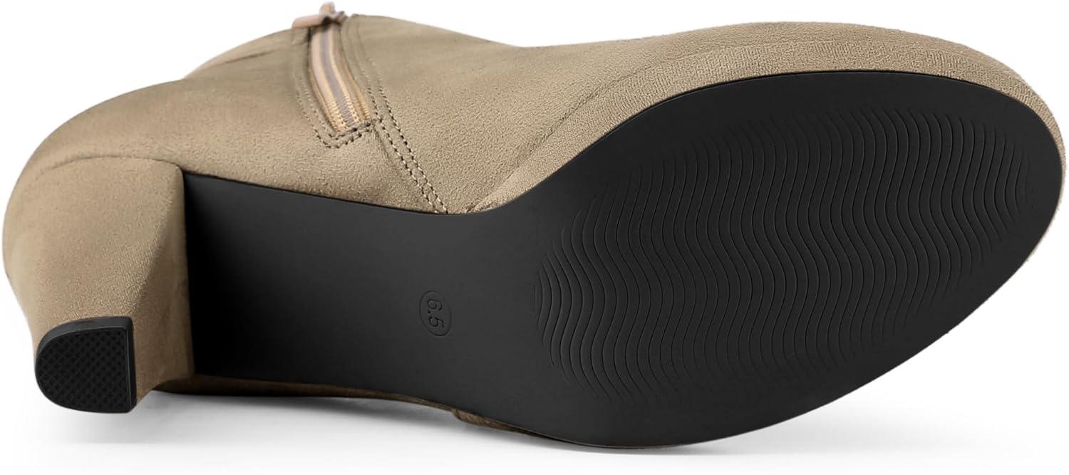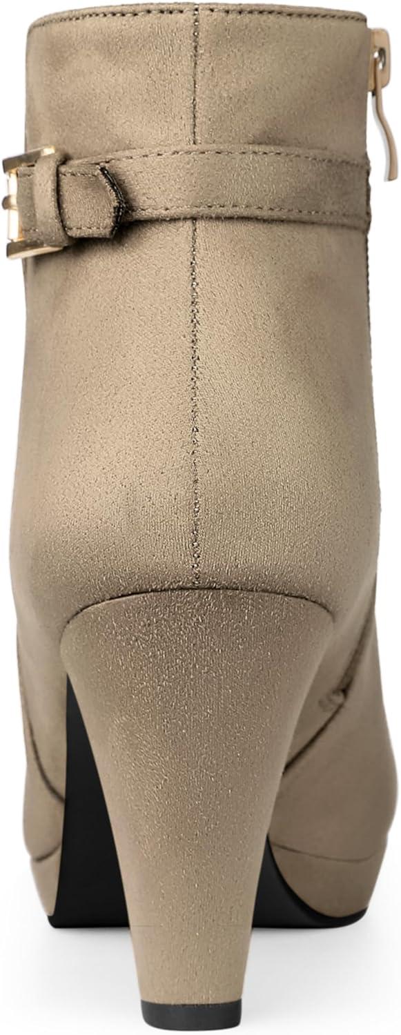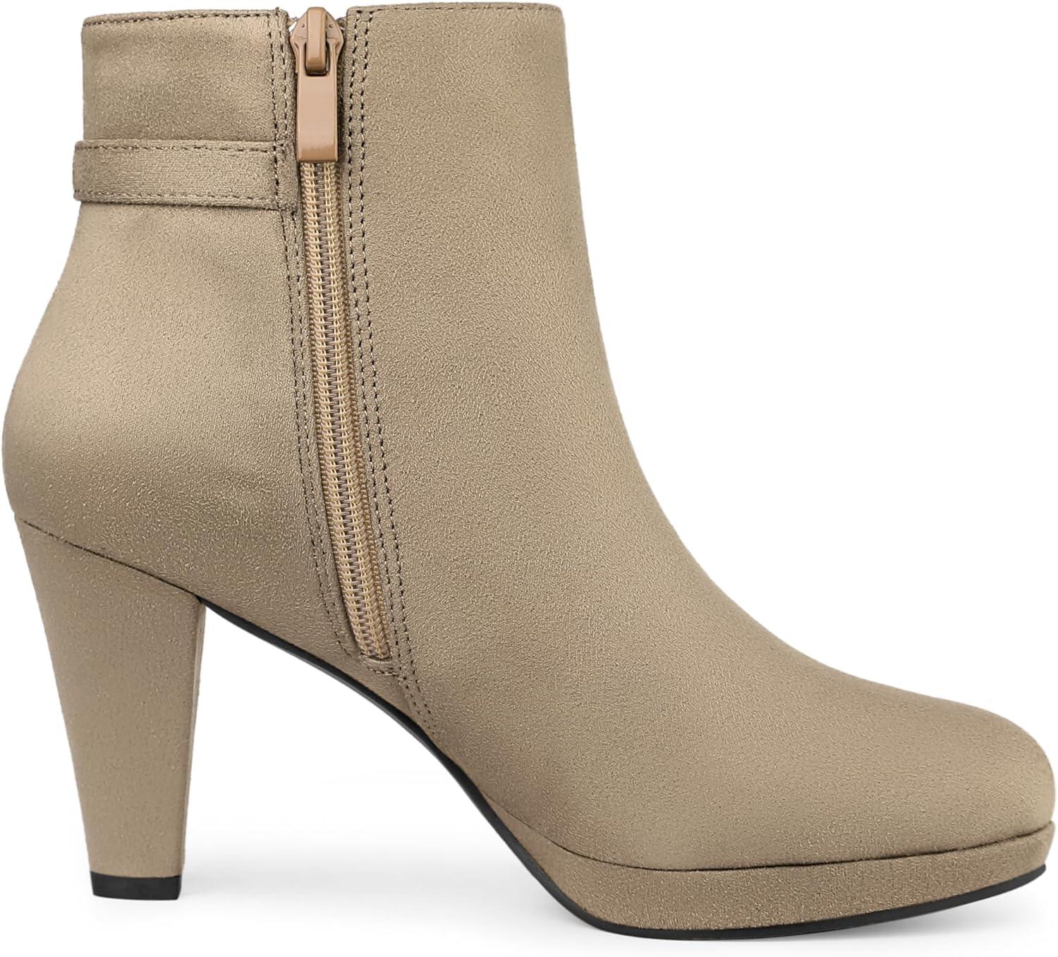 Allegra K Women’s Low Platform Side Zip Buckle Chunky High Heel Ankle Booties(Nude)