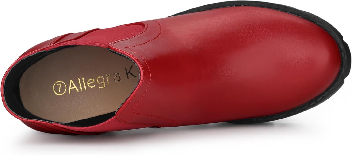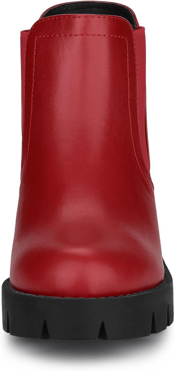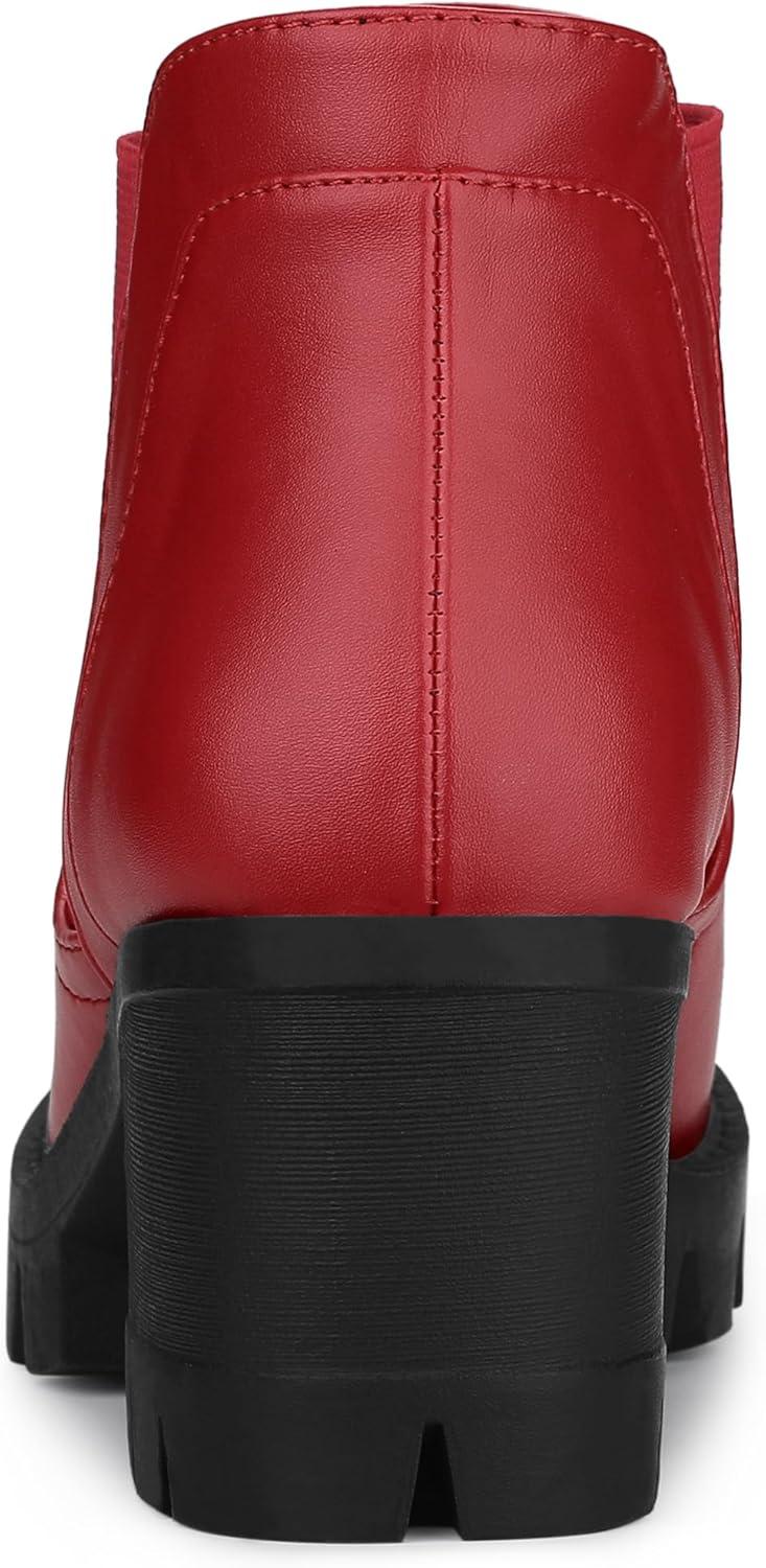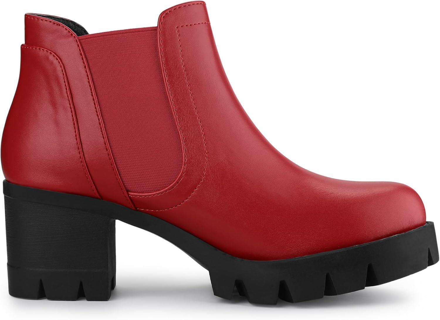 Allegra K Women’s Lug Sole Chunky Heel Chelsea Ankle Boots(Red)