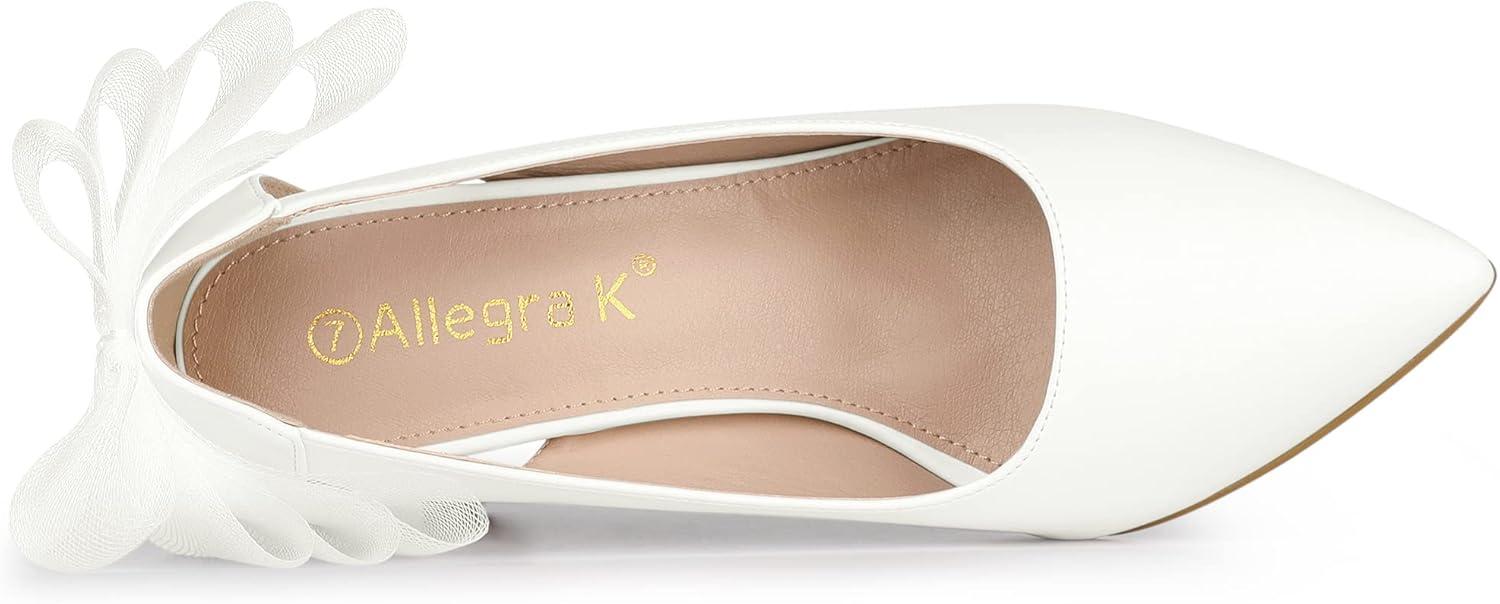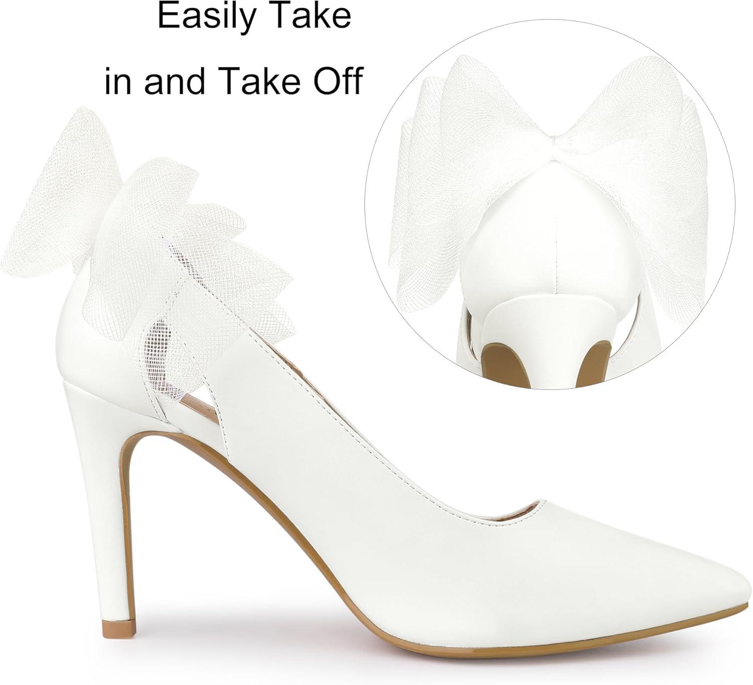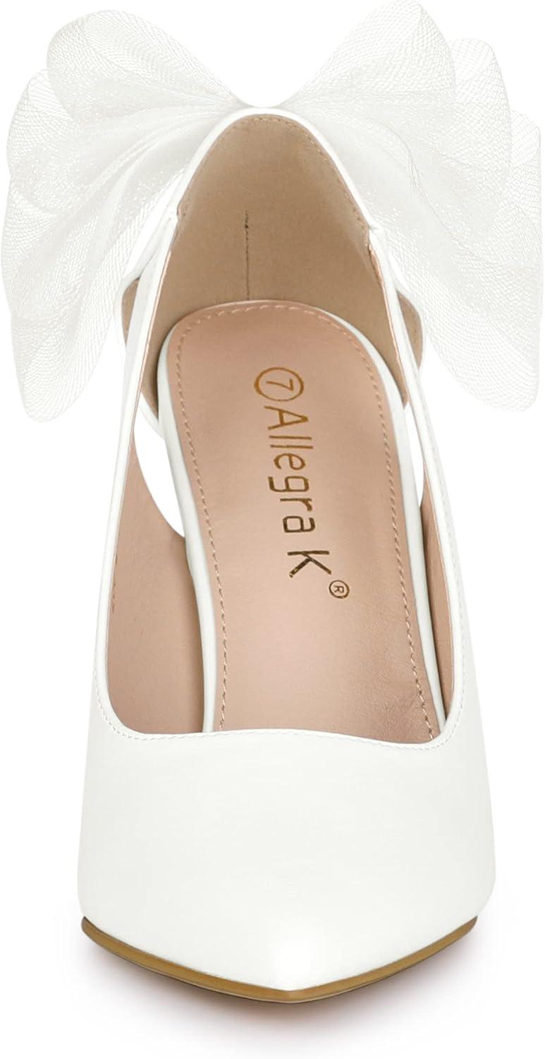 Allegra K Women’s Mesh Bow Pointed Toe Stiletto High Heels Pumps(White)