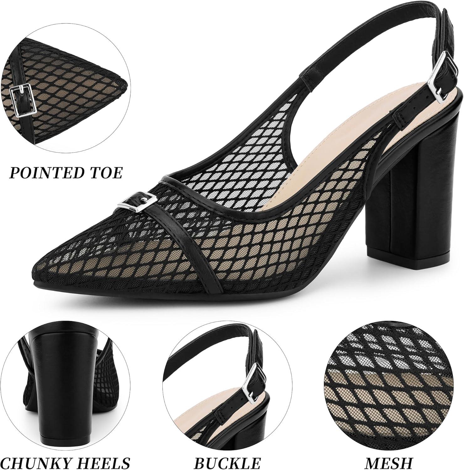 Mental buckle sandal offers comfort/modern features without compromising classic style. Chunky heel pumps are ideal for casual walking and lounging around, and closed-toe pumps have a flattering style that looks great on everyone.