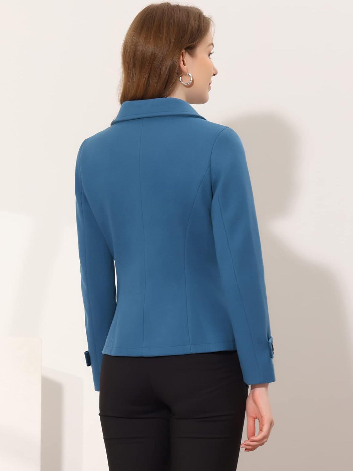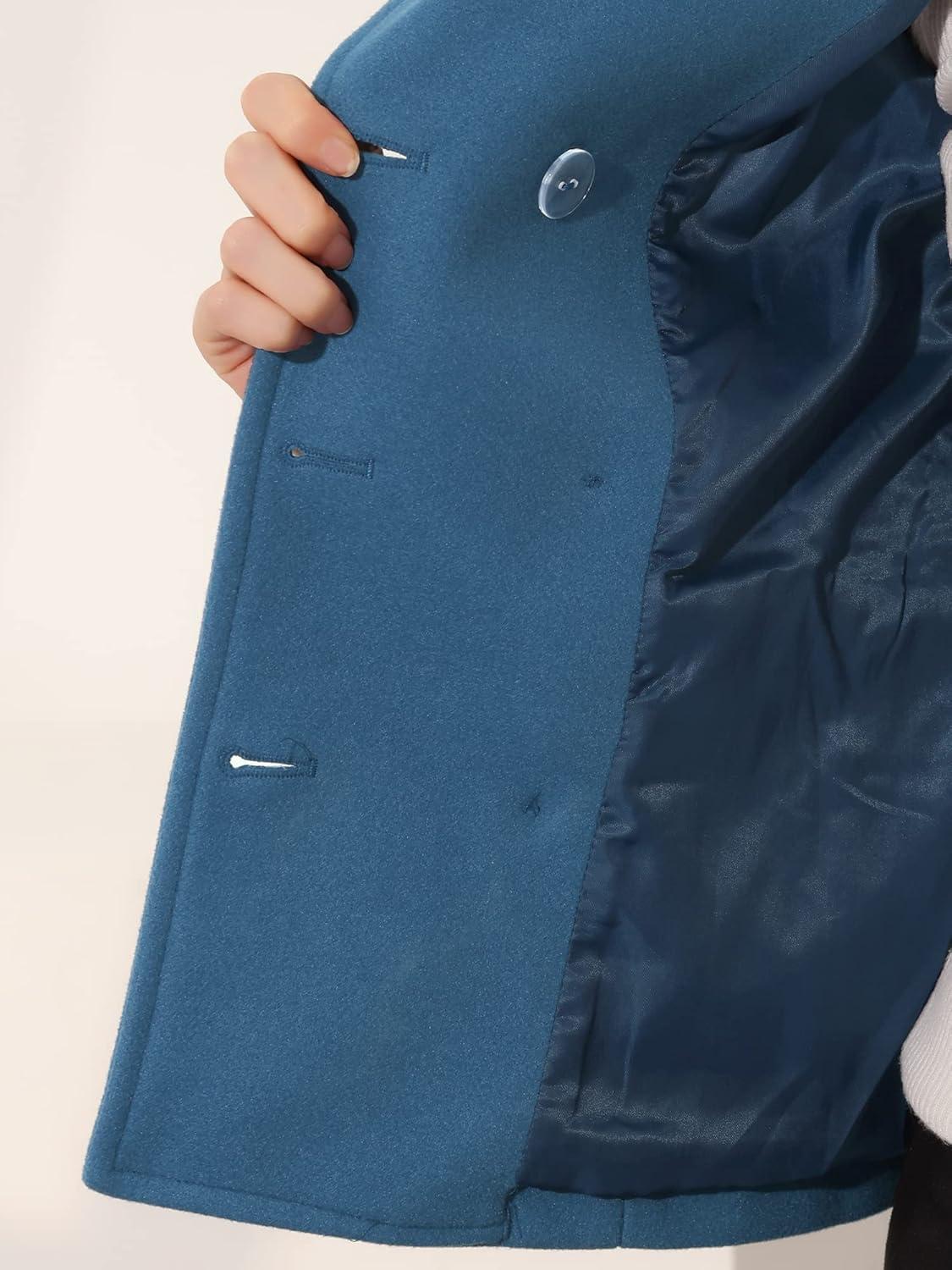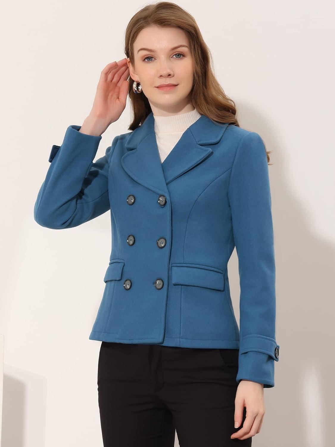 Allegra K Women's Notched Lapel Double Breasted Pea Coat(Blue)