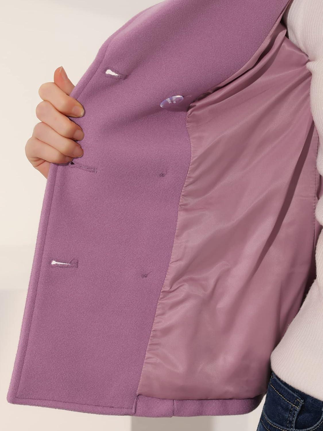 Allegra K Women's Notched Lapel Double Breasted Pea Coat(Grey Purple)