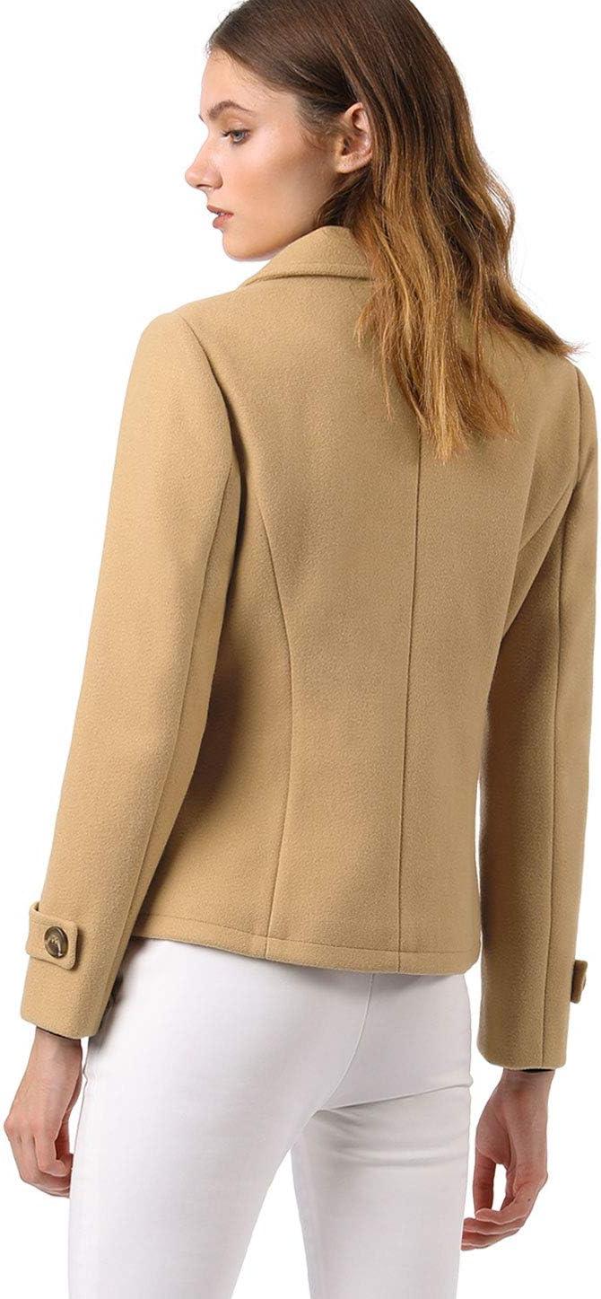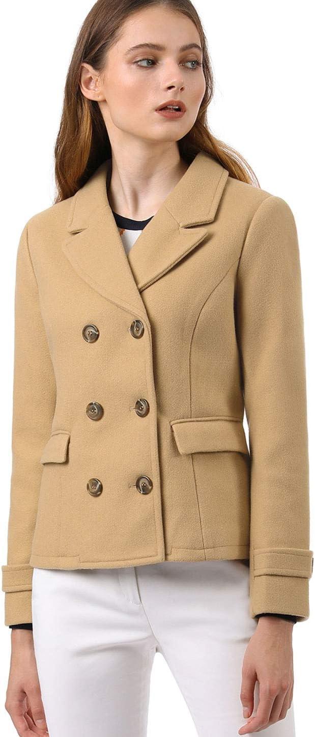 Allegra K Women’s Notched Lapel Double Breasted Pea Coat(Khaki)