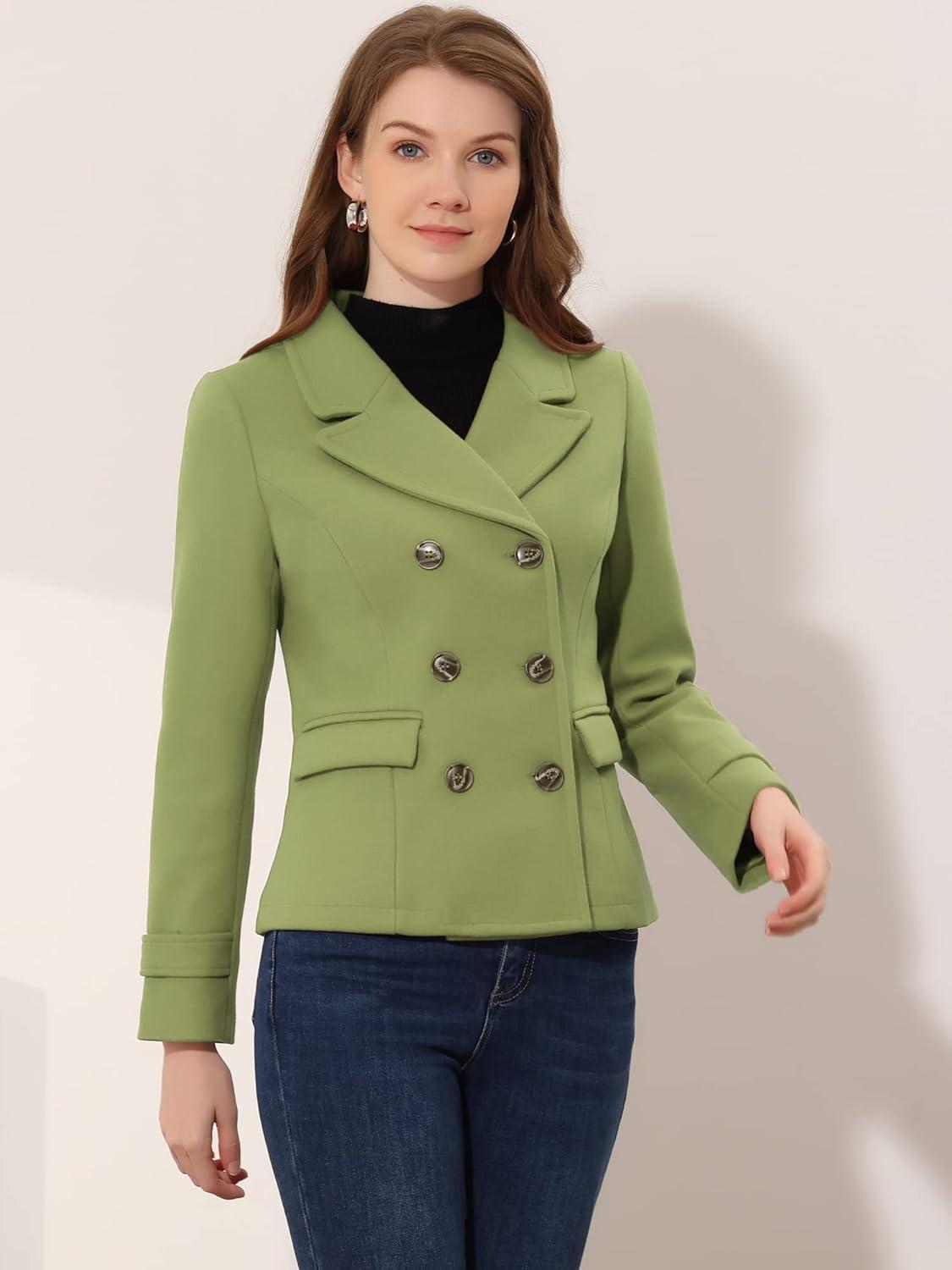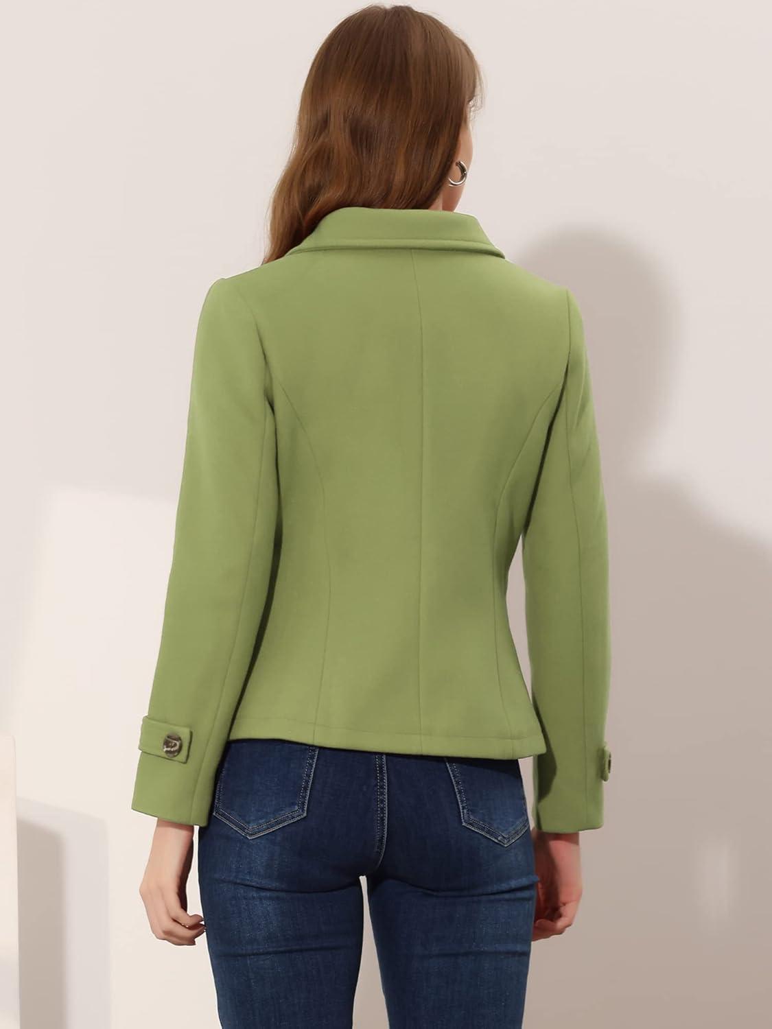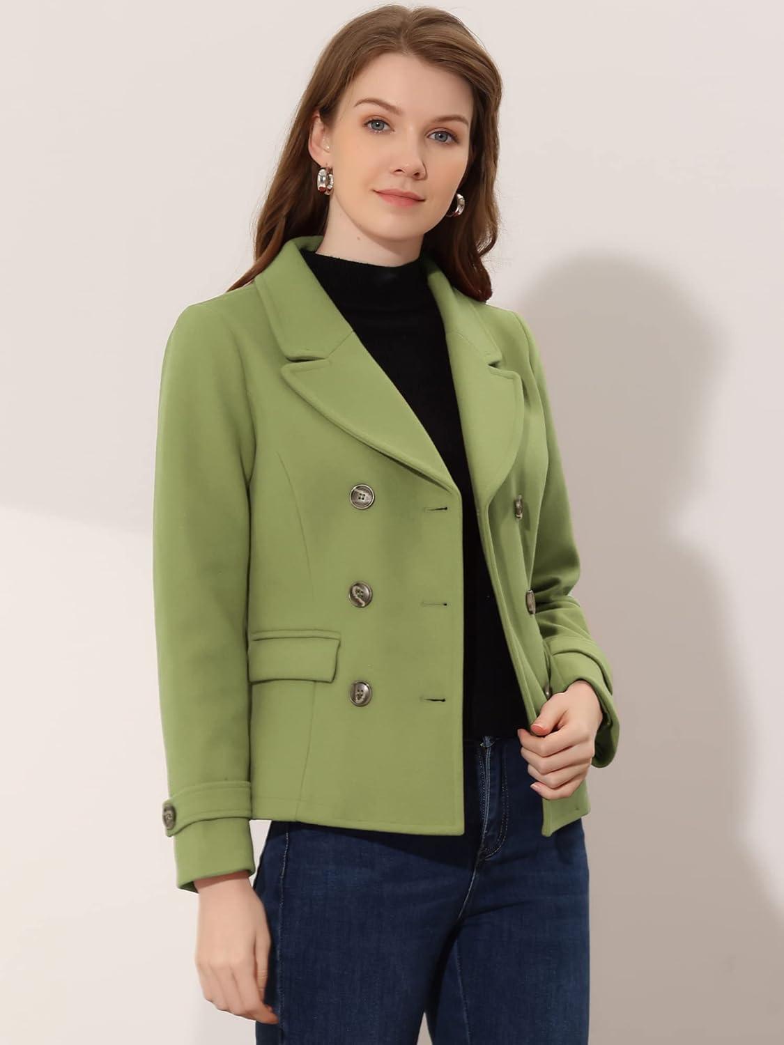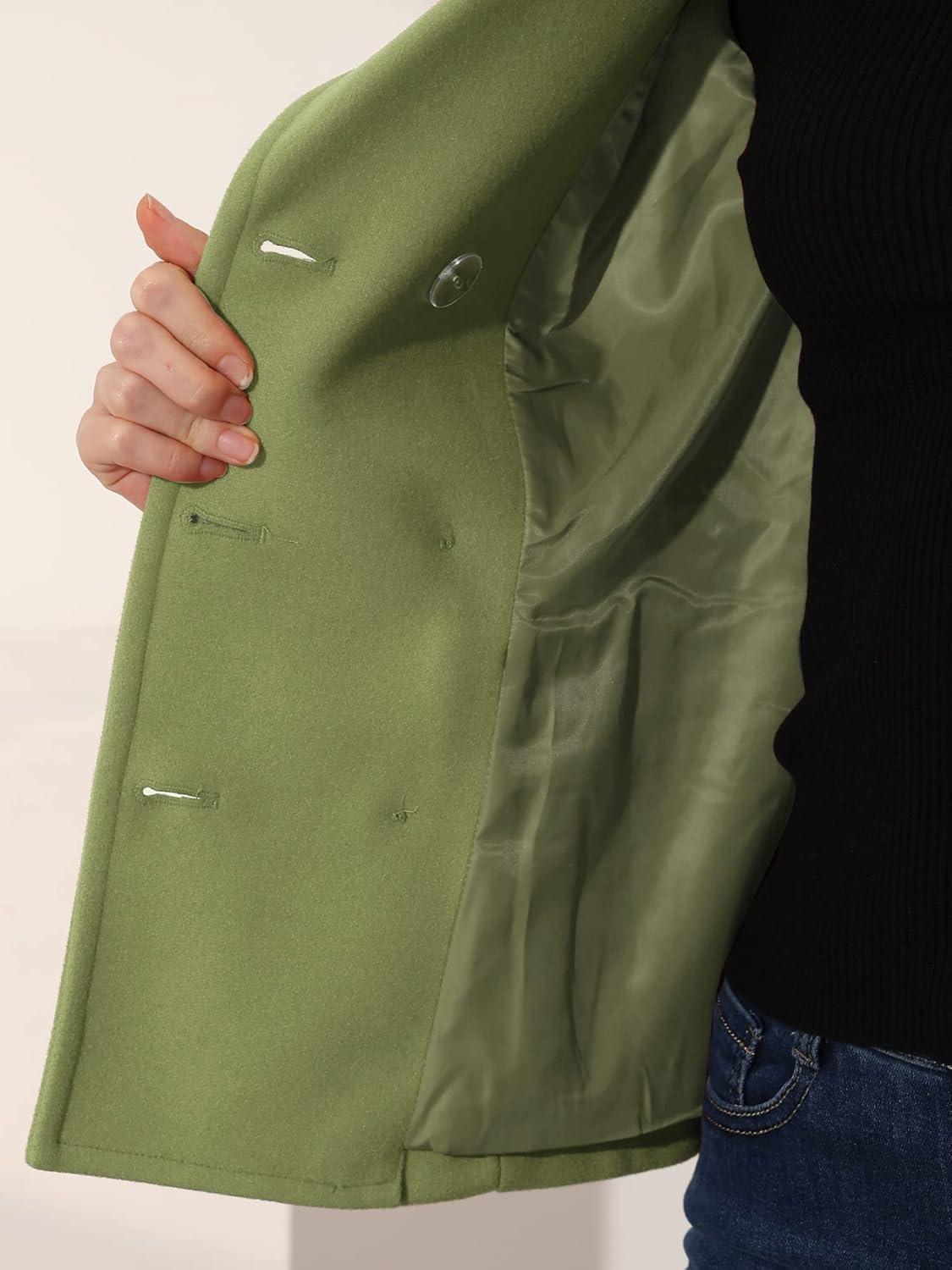Allegra K Women’s Notched Lapel Double Breasted Pea Coat(Pea Green)