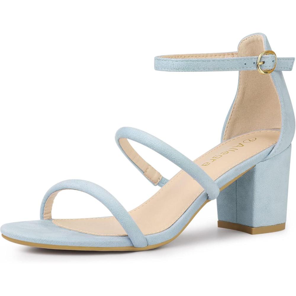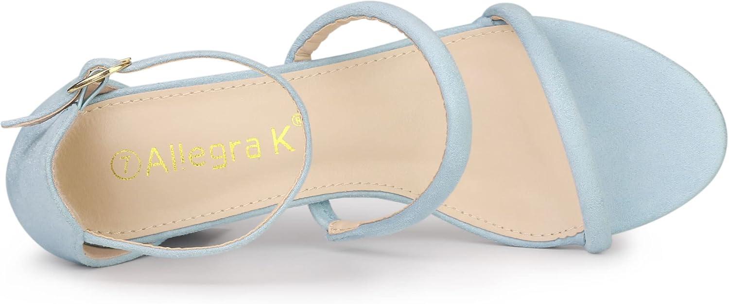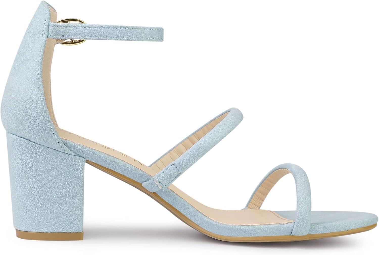 Allegra K Women’s Open Toe Ankle Strap Chunky Heels Sandals(Sky Blue)