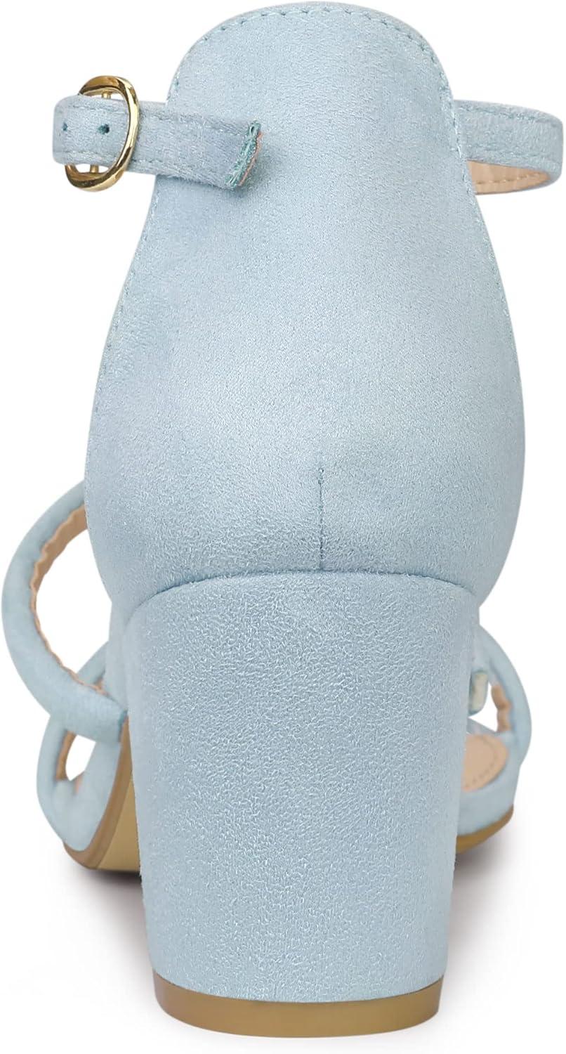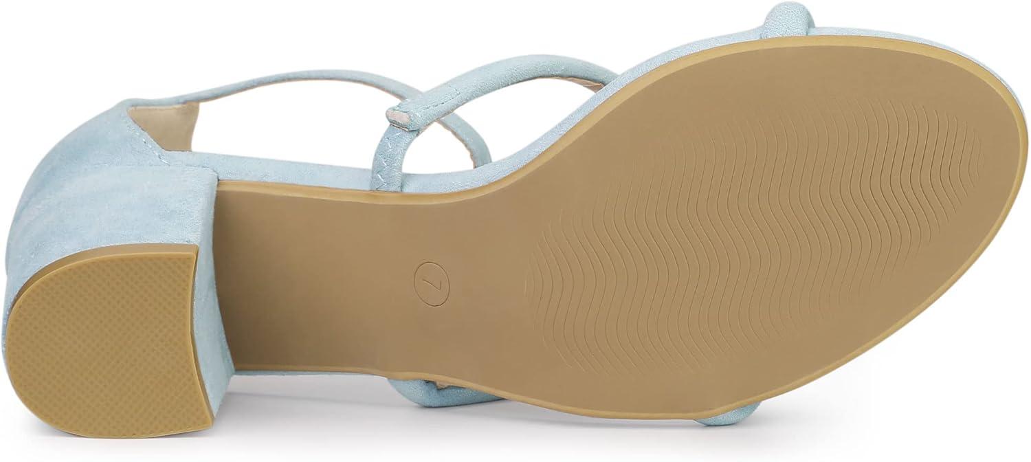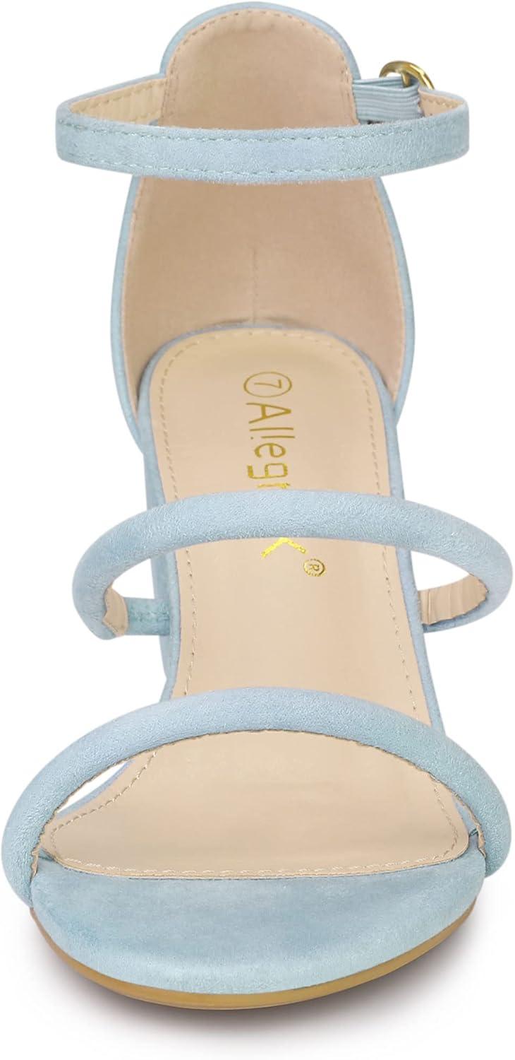 Allegra K Women’s Open Toe Ankle Strap Chunky Heels Sandals(Sky Blue)