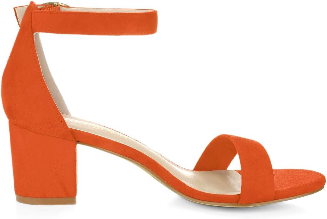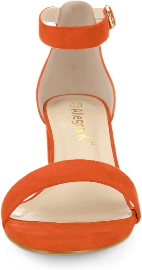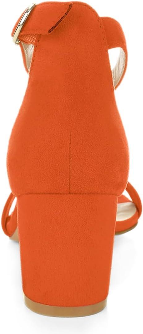 Allegra K Women’s Open Toe Block Heel Ankle Strap Sandals(Orange)