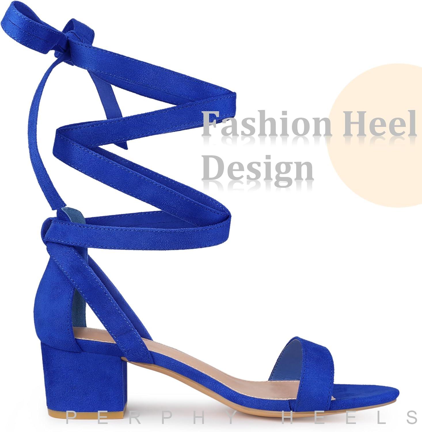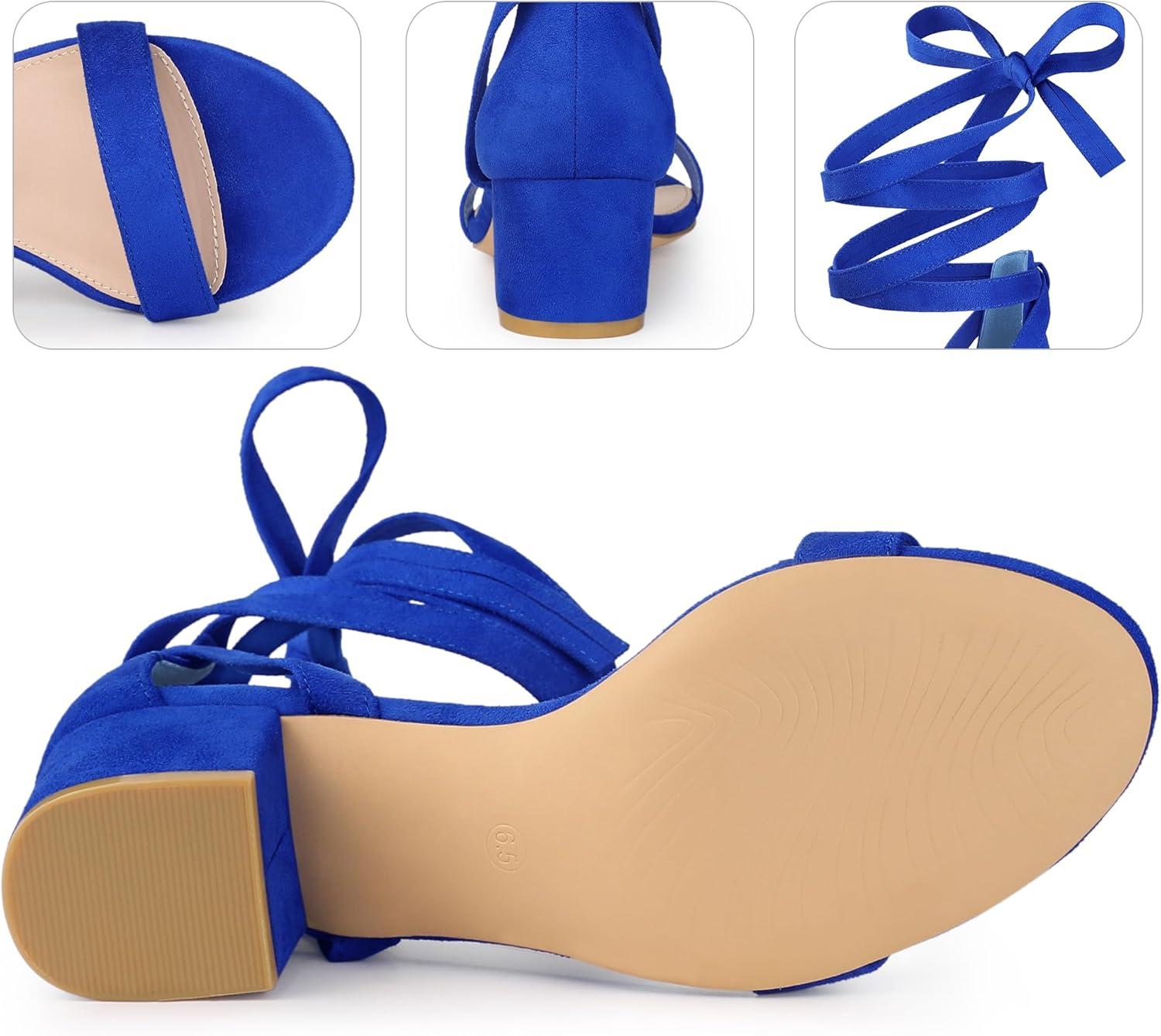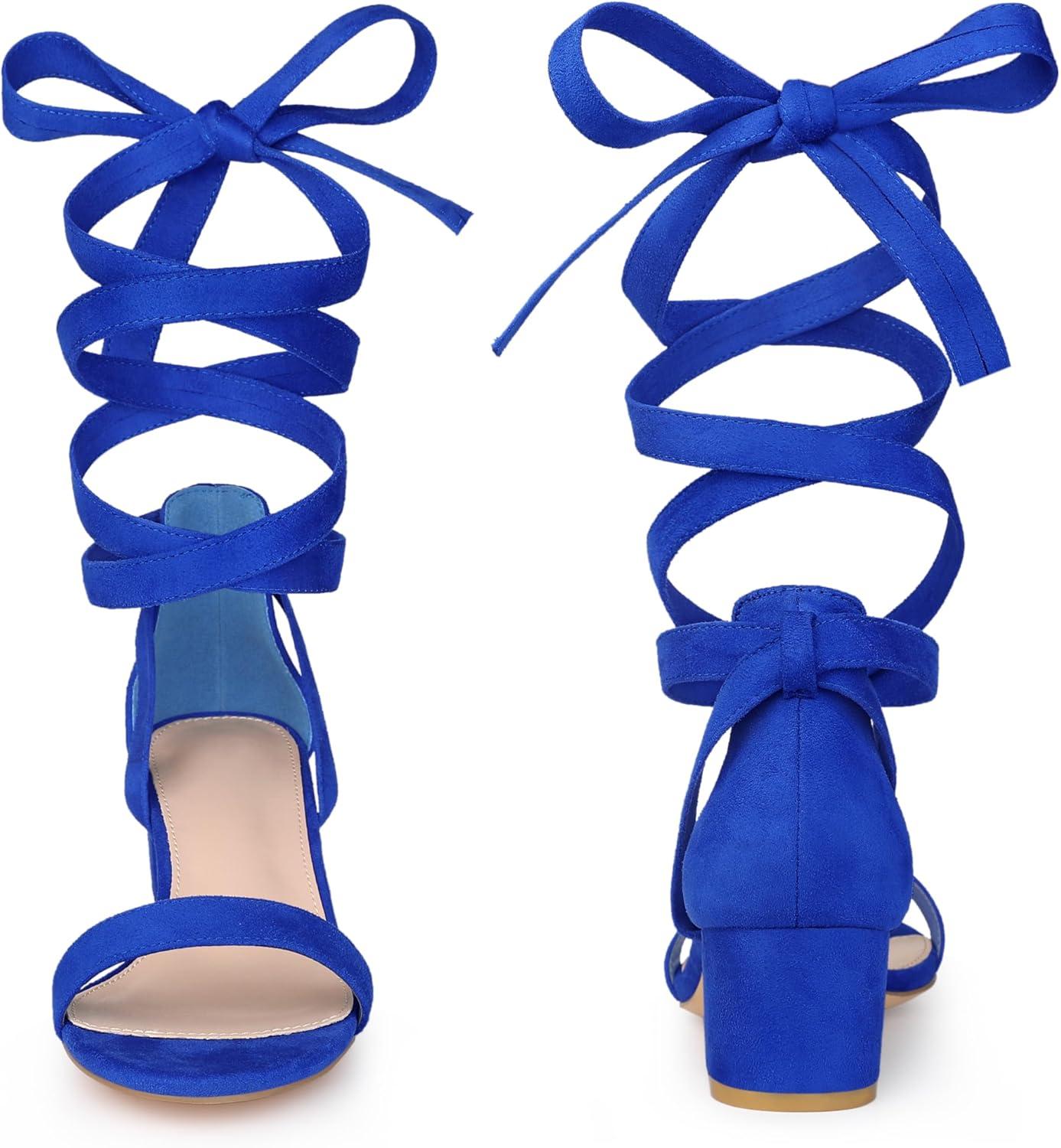 Allegra K Women’s Open Toe Block Heel Lace Up Heels Heel Sandals(Royal Blue)