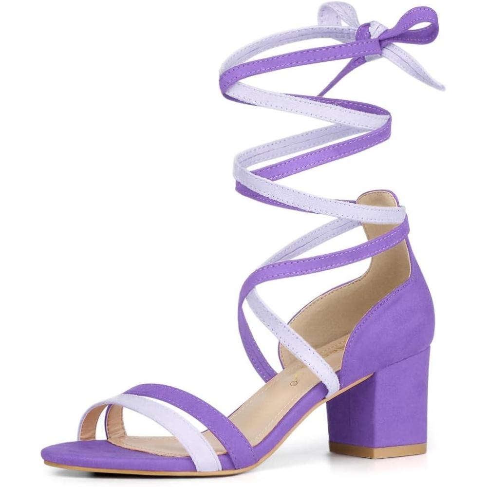 Allegra K Women’s Open Toe Color Block Heel Lace Up Sandals(Purple)