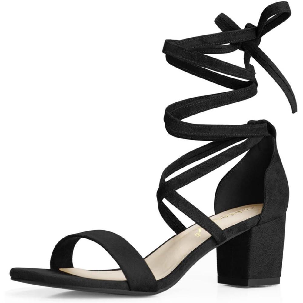 Allegra K Women’s Open Toe Lace Up Mid Chunky Heeled Sandals(Black)