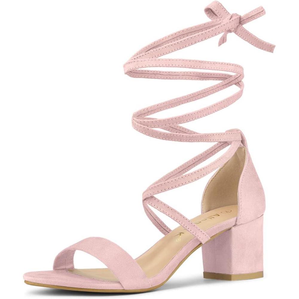 Allegra K Women’s Open Toe Lace Up Mid Chunky Heeled Sandals(Light Pink)
