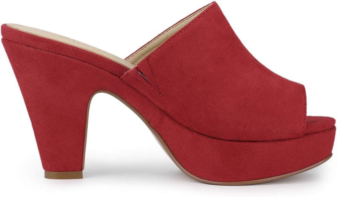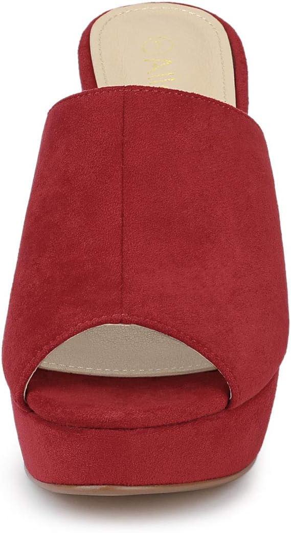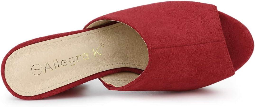 Allegra K Women’s Open Toe Platform Chunky Heel Slides Sandals(Red)