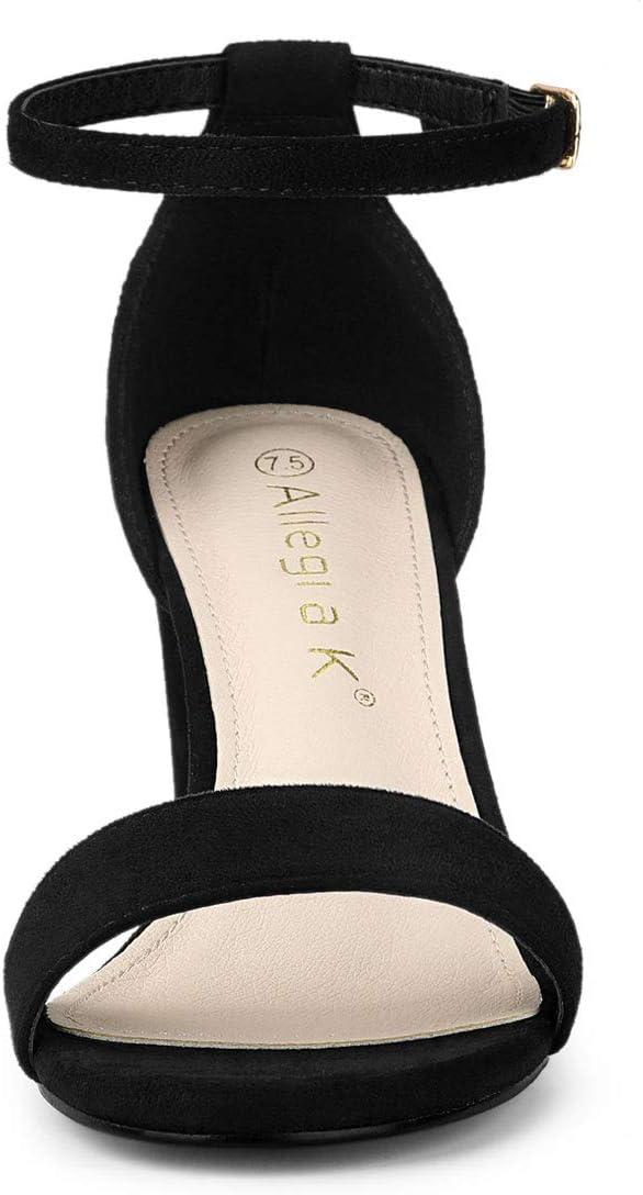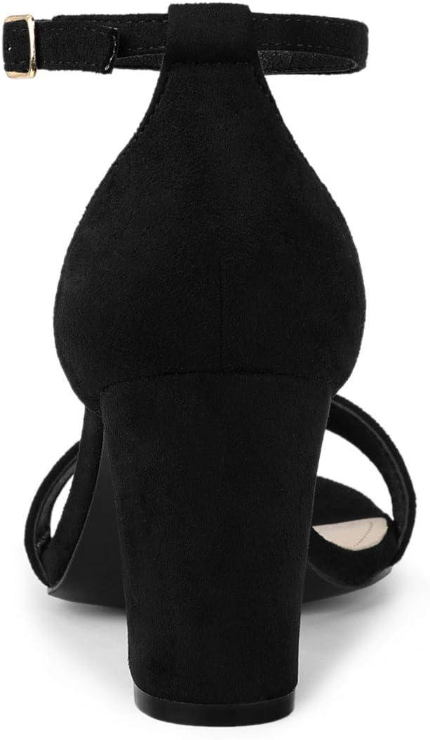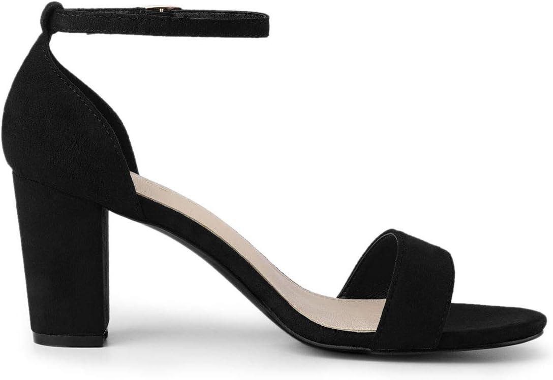Allegra K Women’s Open Toe Printed Ankle Strap Chunky High Heel Sandals(Black)