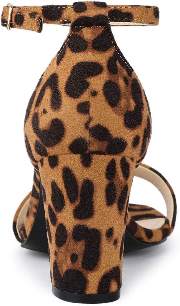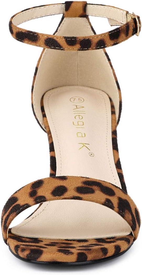 Allegra K Women’s Open Toe Printed Ankle Strap Chunky High Heel Sandals(Brown Leopard)