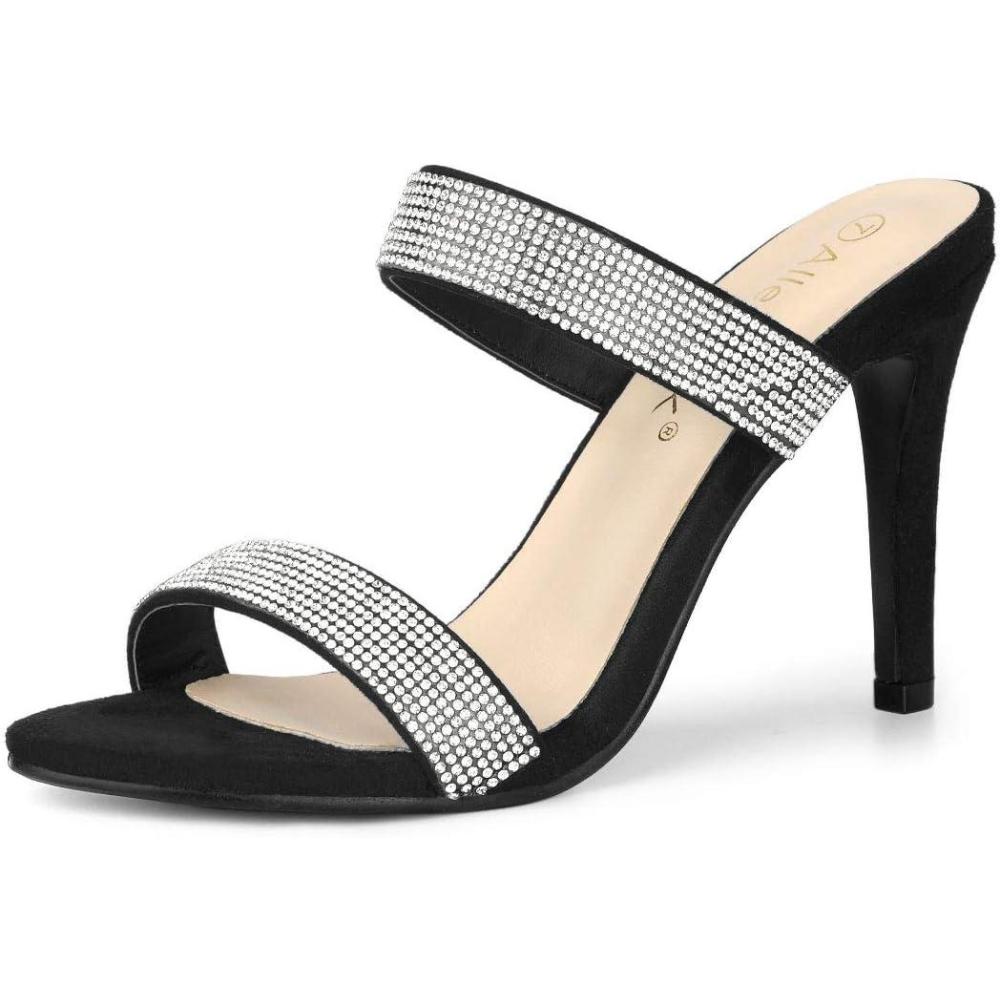 Allegra K Women’s Open Toe Stiletto Heel Rhinestone Mules Sandals(Black)