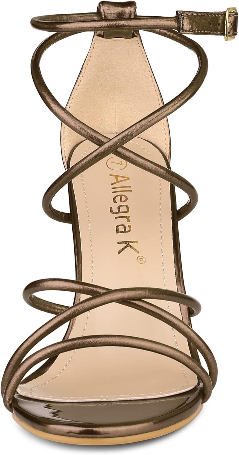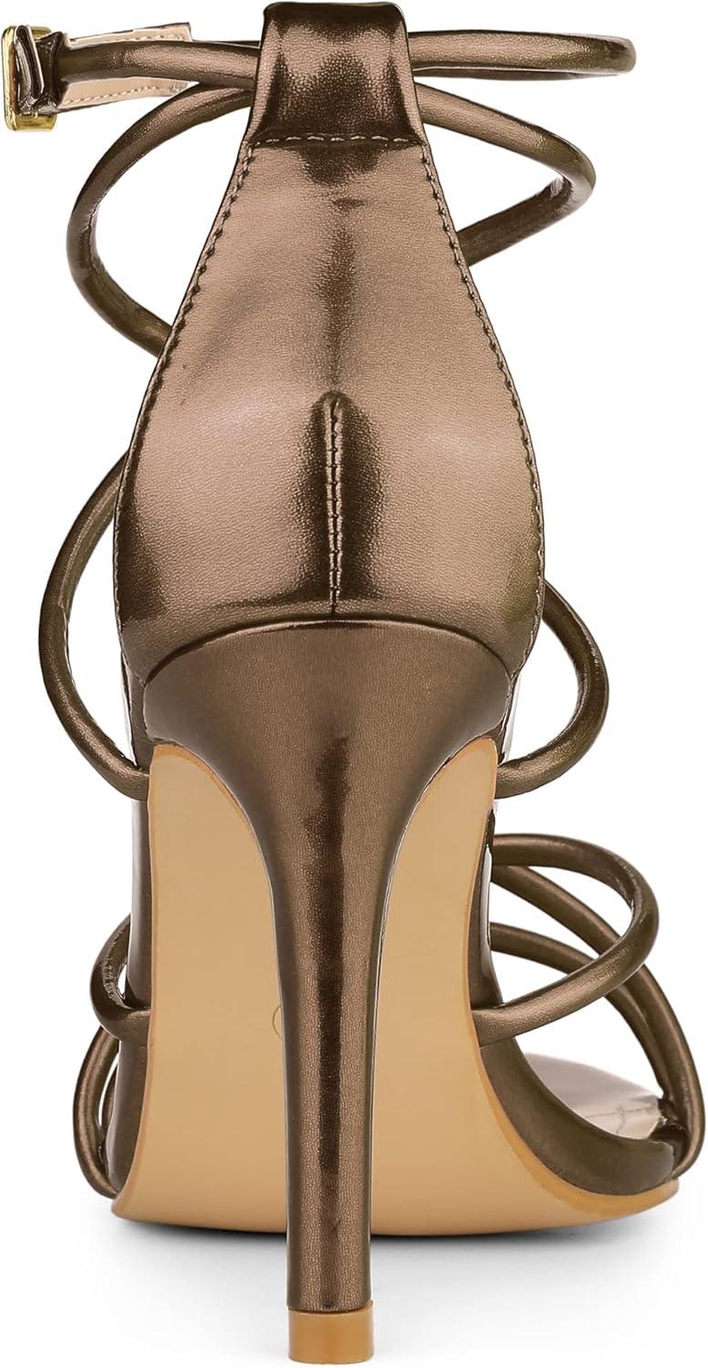 Allegra K Women’s Open Toe Strappy Straps Stiletto Heel Sandals(Brown)
