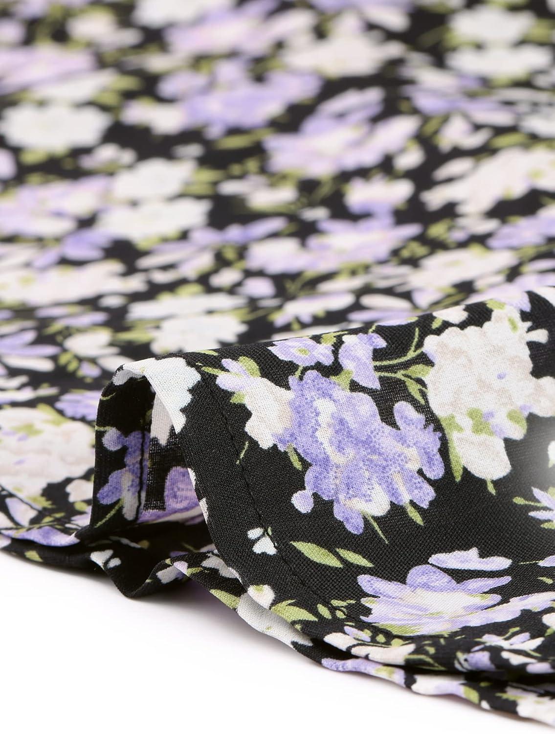 Allegra K Women's Peter Pan Collar Dress 2024 Floral Printed Button Bow Tie Short Sleeve Shirt Dresses(Black-white)