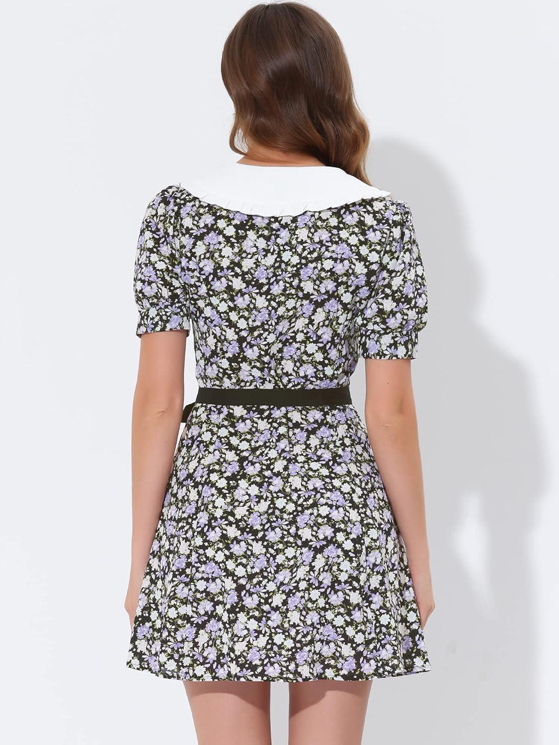 imageAllegra K Womens Peter Pan Collar Dress 2024 Floral Printed Button Bow Tie Short Sleeve Shirt DressesBlackwhite