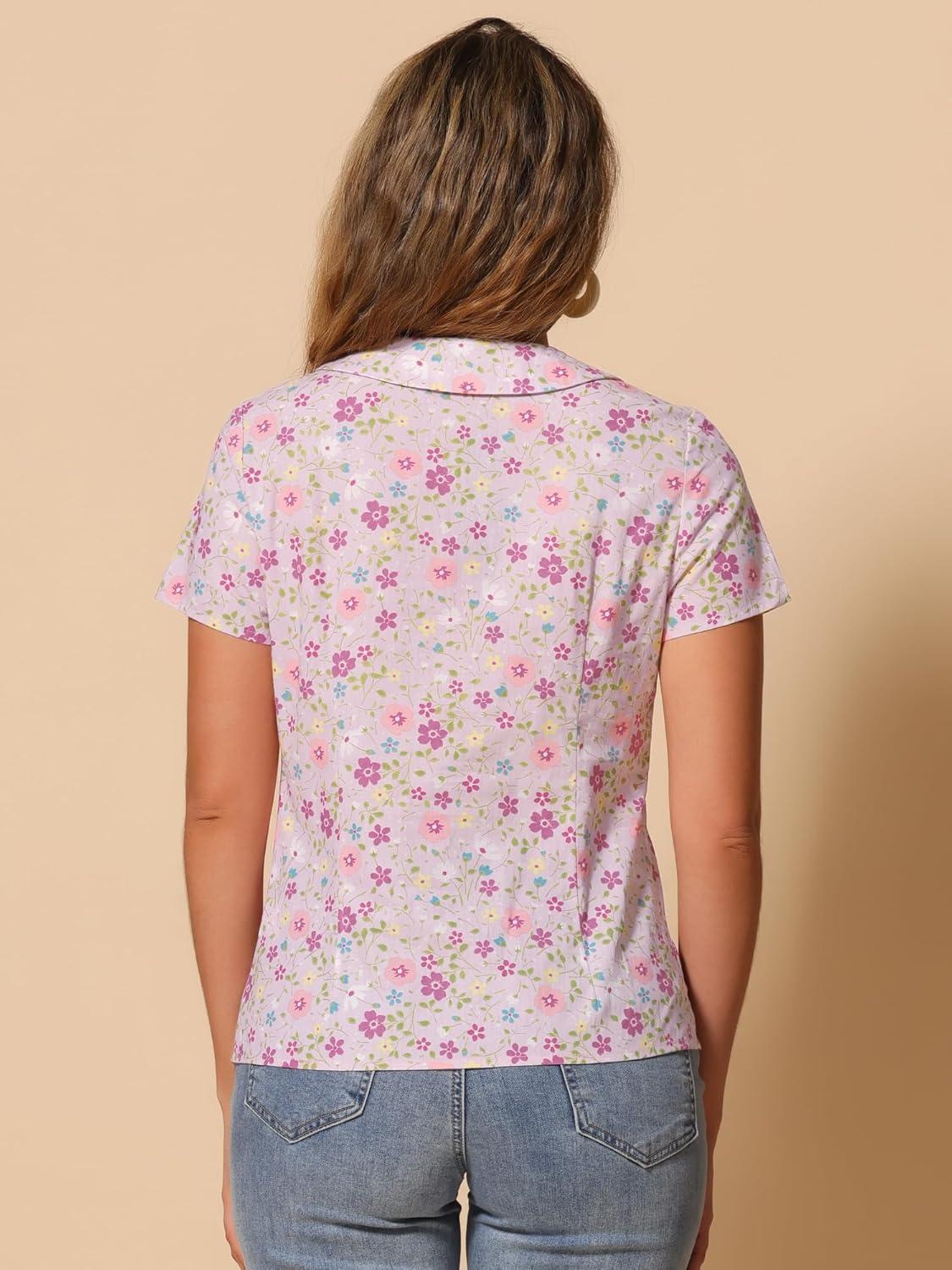 imageAllegra K Womens Peter Pan Collar Shirts Button Front Vintage Floral Blouse TopGreen Pink