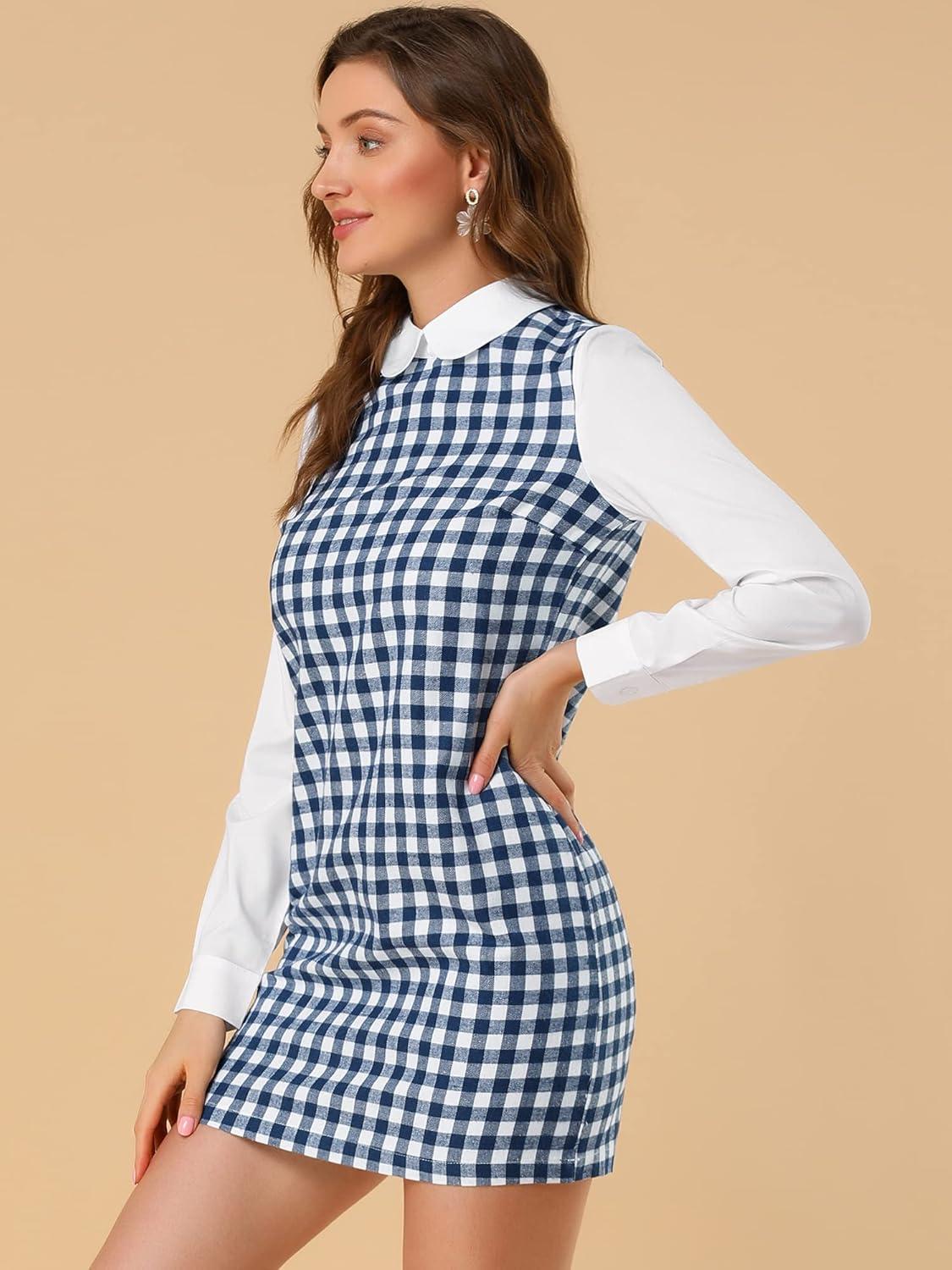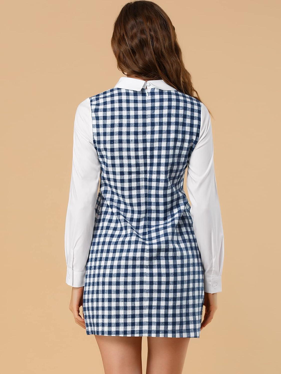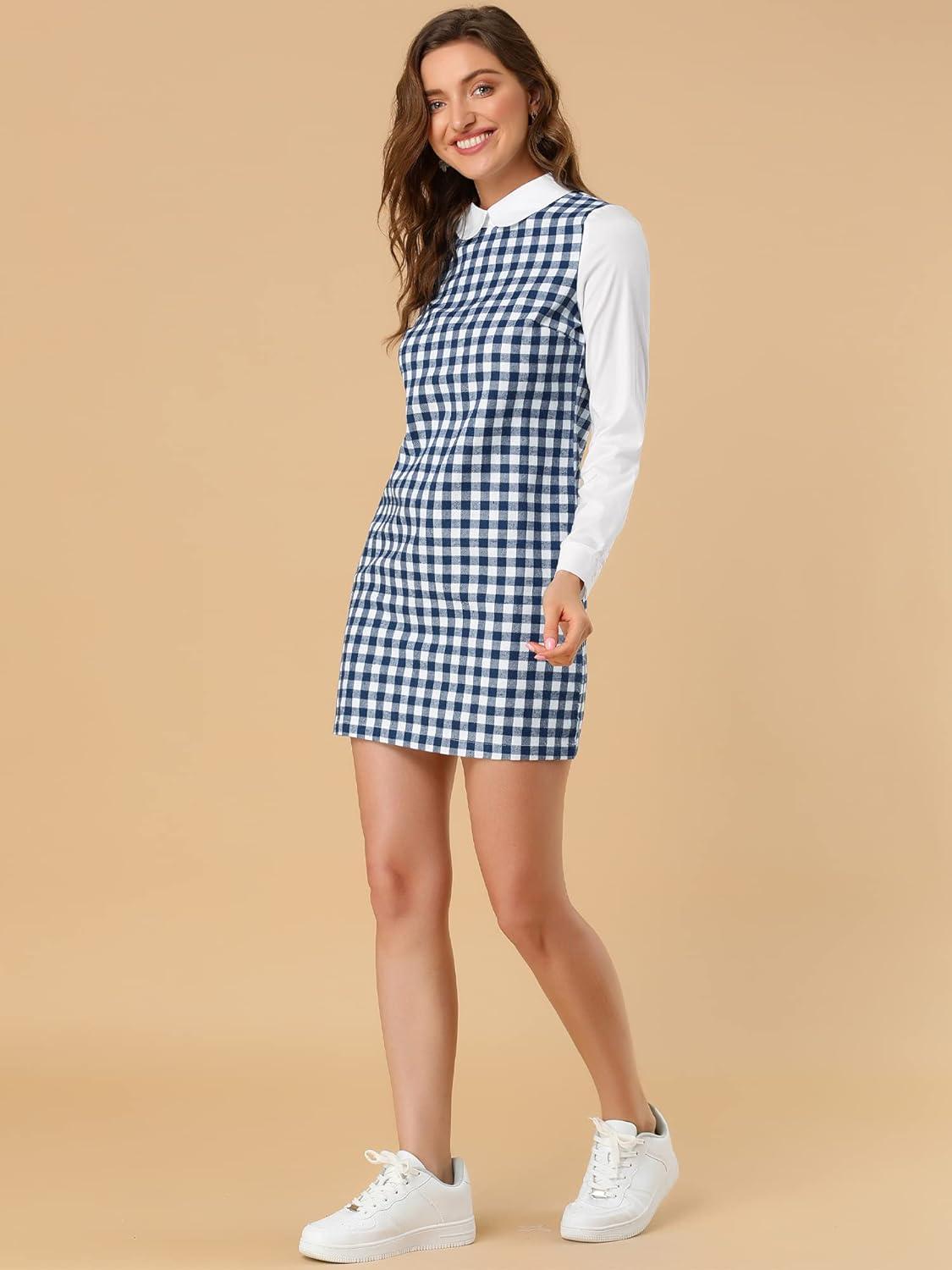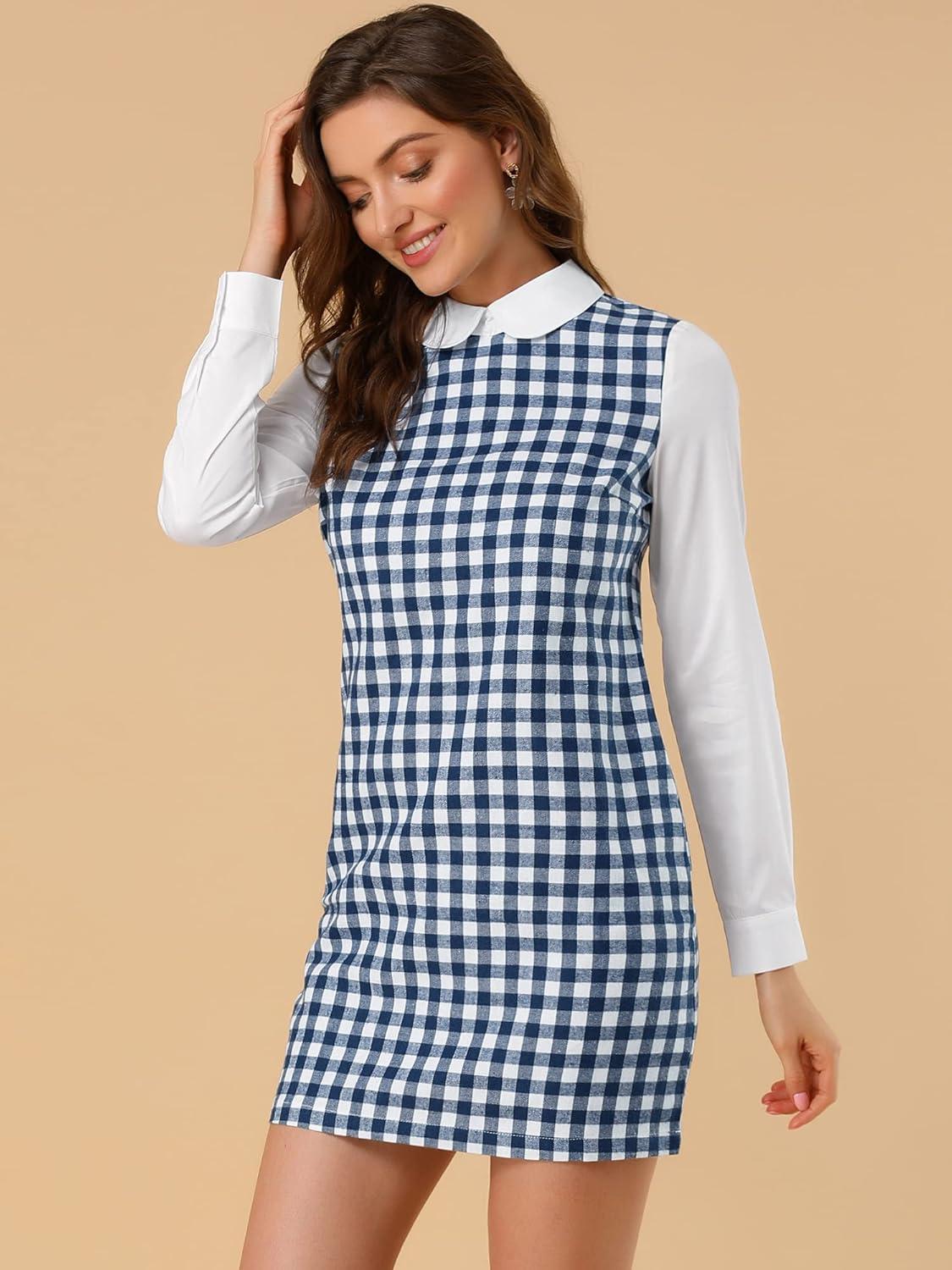 imageAllegra K Womens Peter Pan Dress 60s Clock Block Mini Long Sleeve DressesBlue White