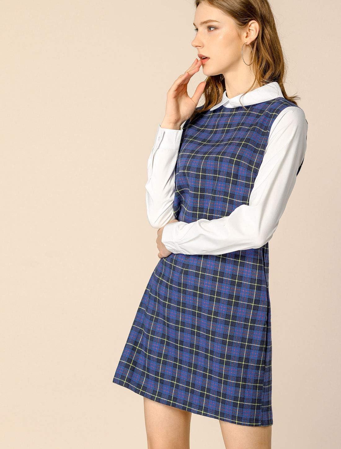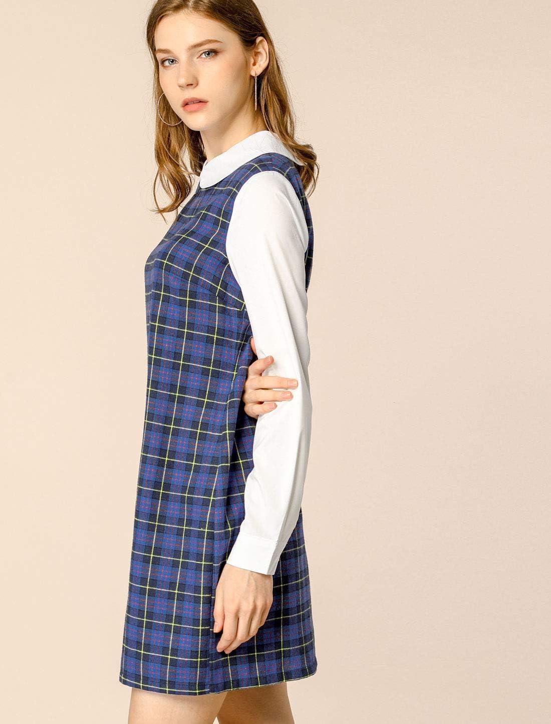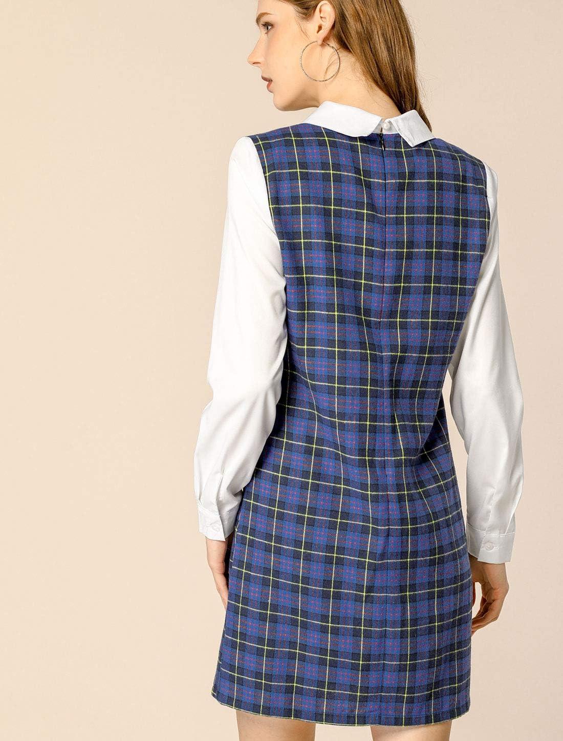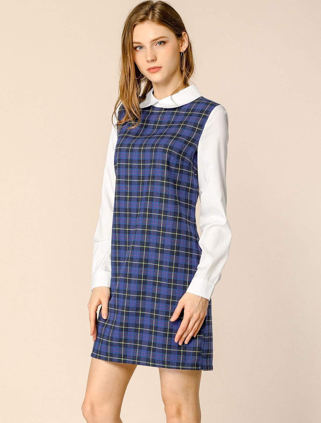 imageAllegra K Womens Peter Pan Dress 60s Clock Block Mini Long Sleeve DressesBlue