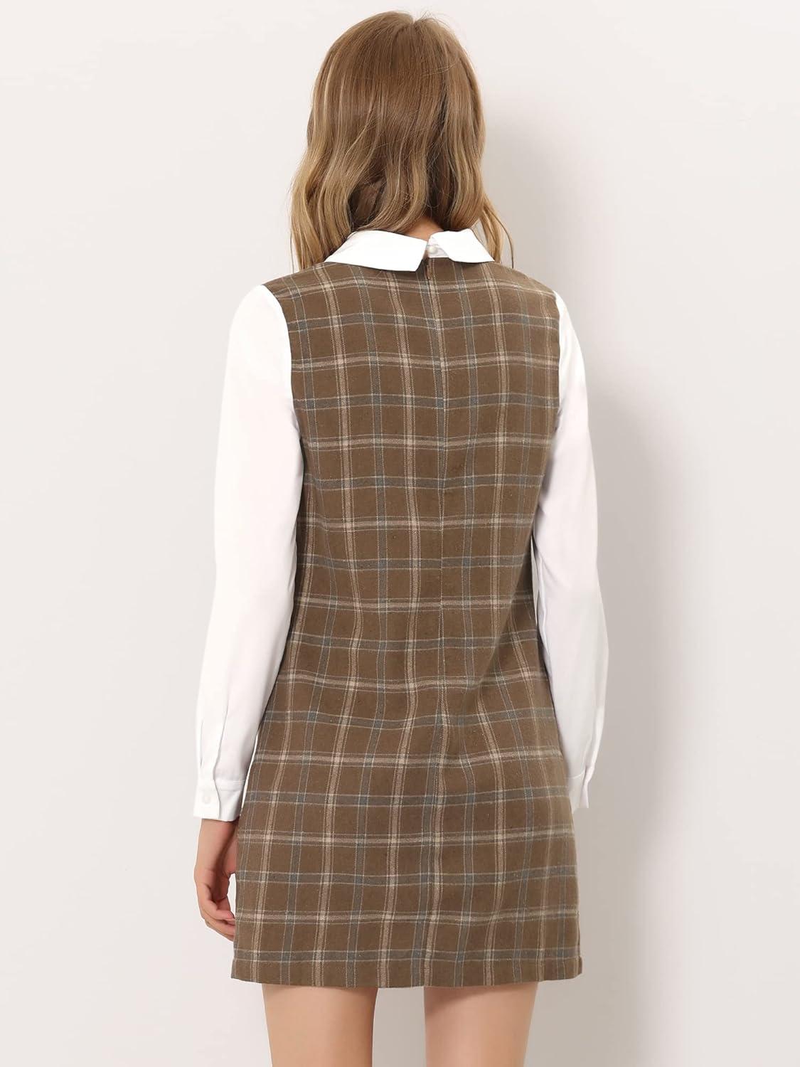 Allegra K Women’s Peter Pan Dress 60s Clock Block Mini Long Sleeve Dresses(Dark Brown)