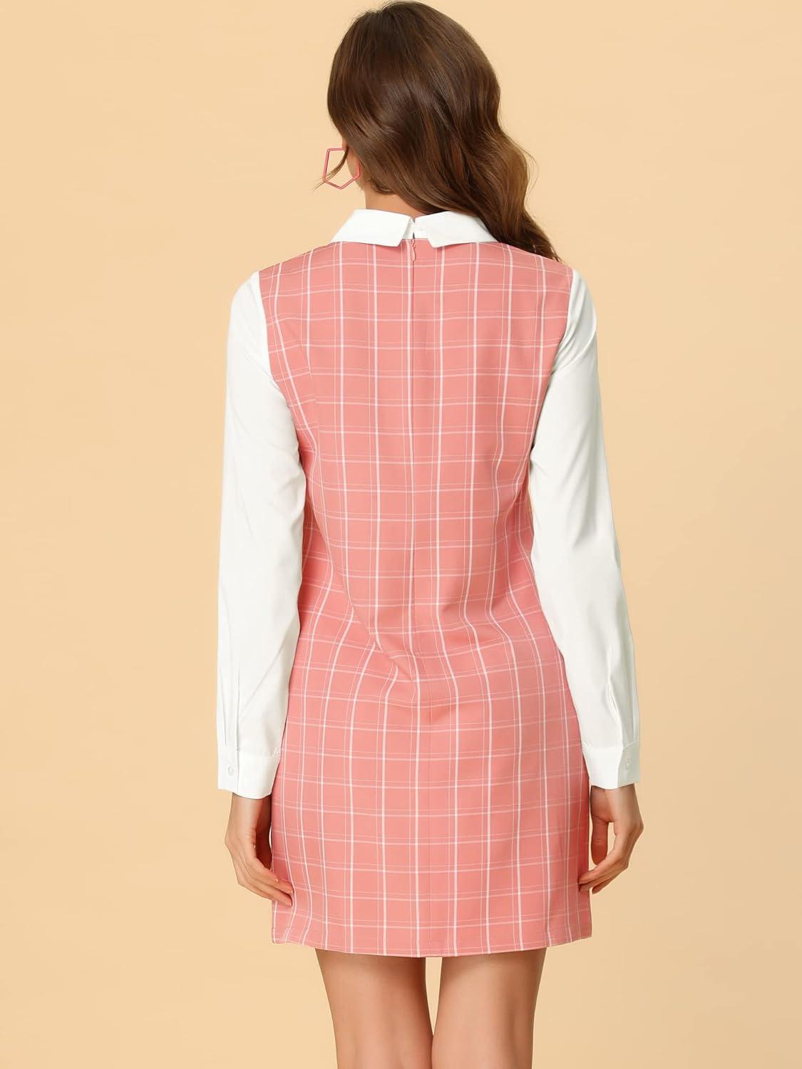 Allegra K Women’s Peter Pan Dress 60s Clock Block Mini Long Sleeve Dresses(Pink)
