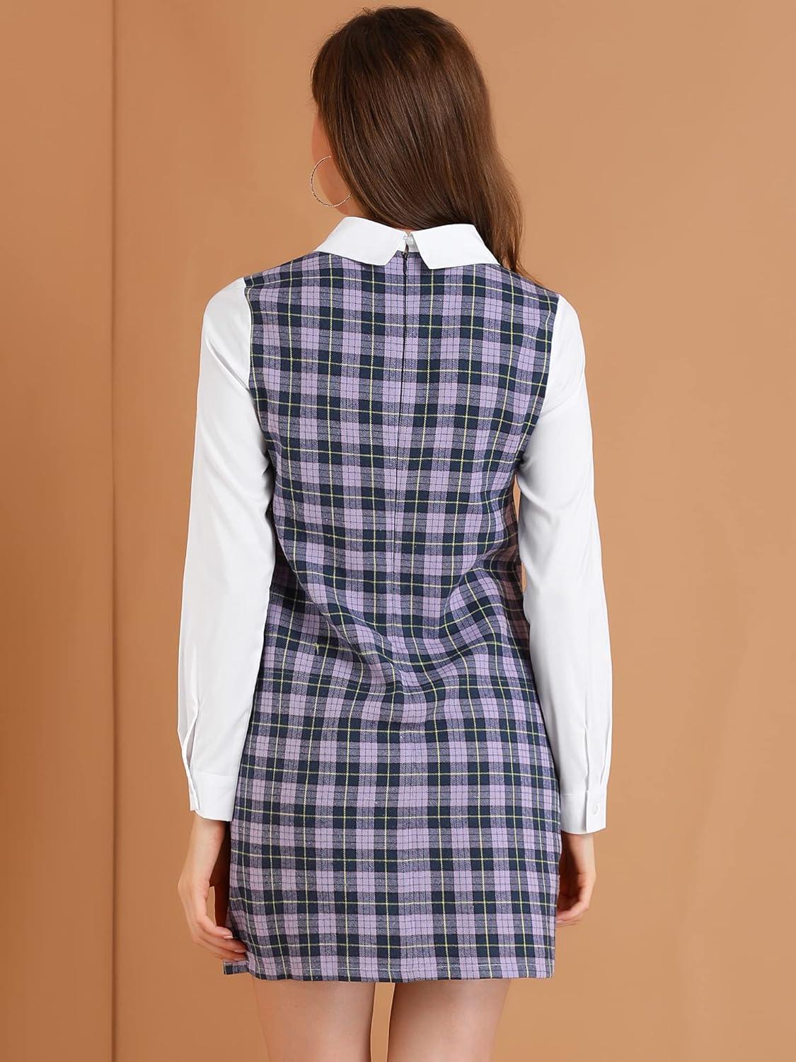 Allegra K Women's Peter Pan Dress 60s Clock Block Mini Long Sleeve Dresses(Purple)