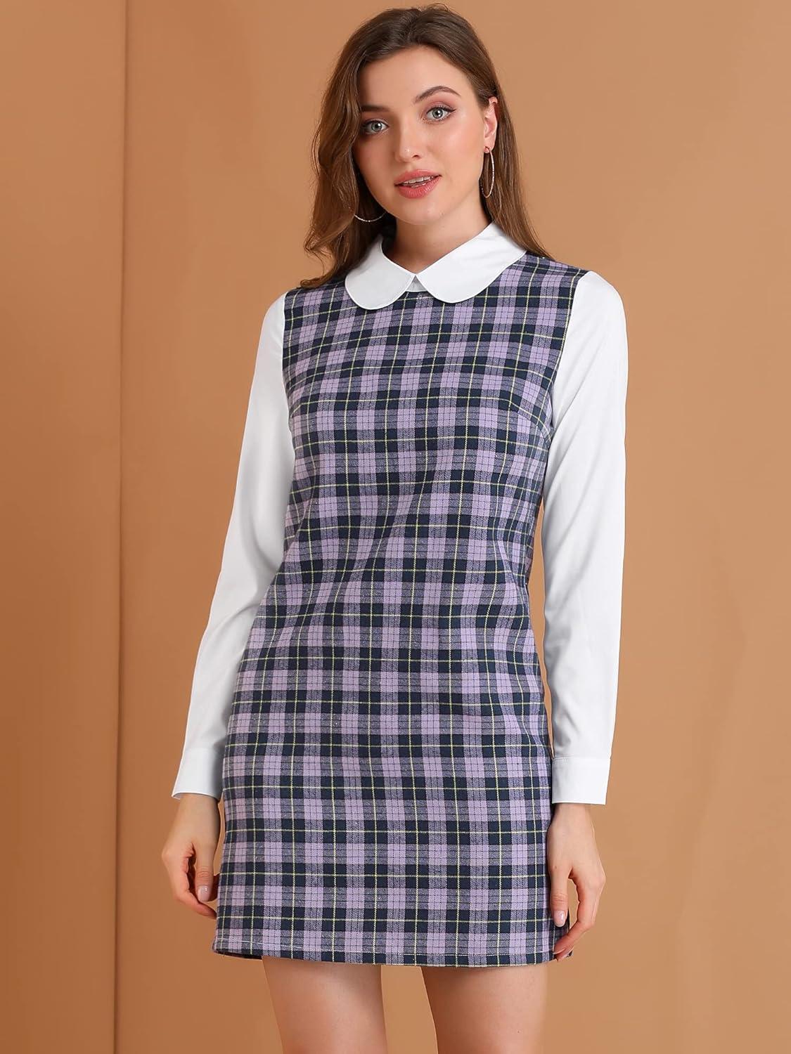 Allegra K Women’s Peter Pan Dress 60s Clock Block Mini Long Sleeve Dresses(Purple)