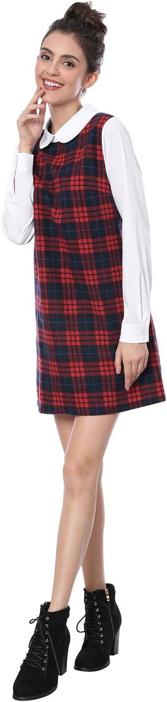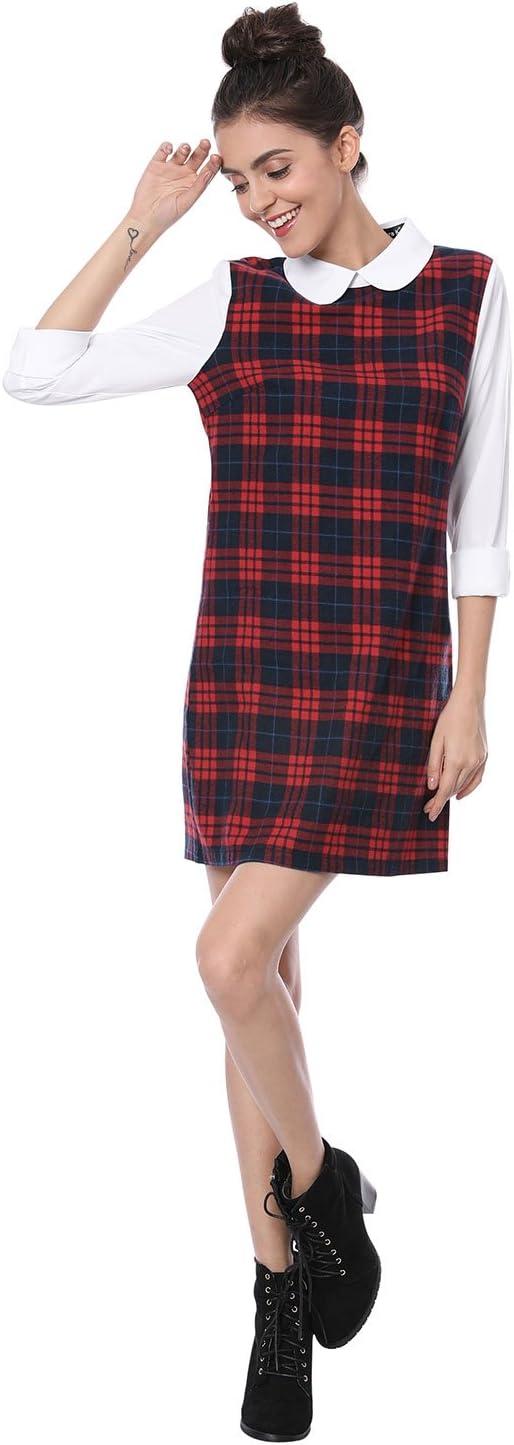 Allegra K Women's Peter Pan Dress 60s Clock Block Mini Long Sleeve Dresses(Red)