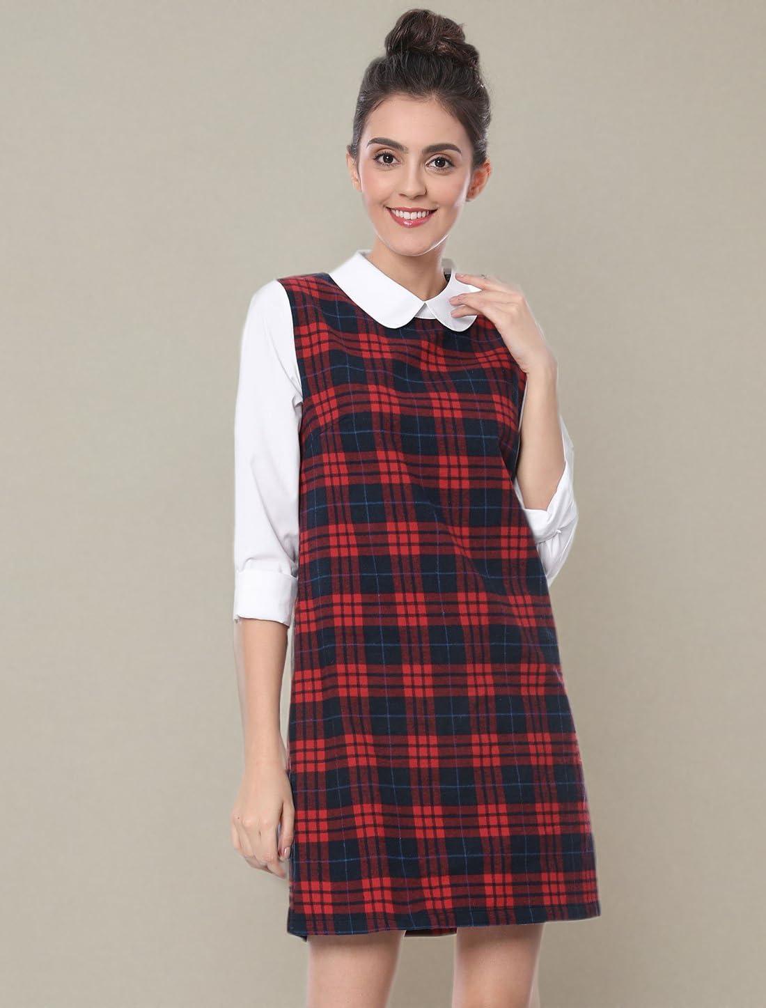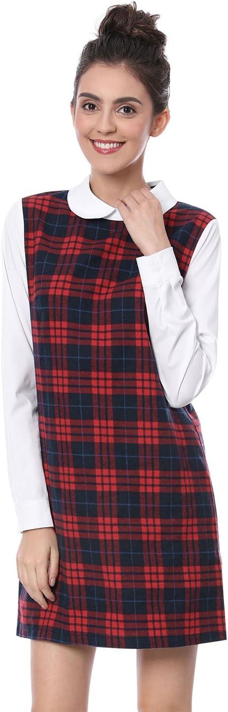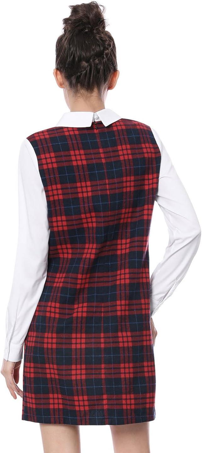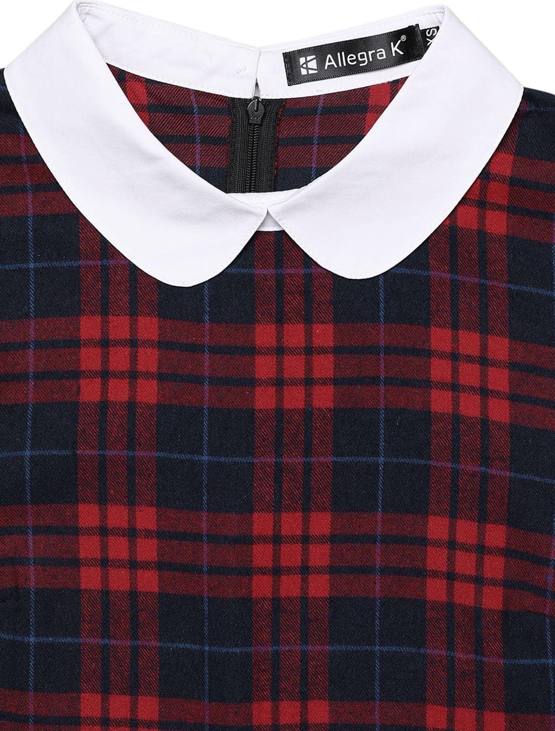 imageAllegra K Womens Peter Pan Dress 60s Clock Block Mini Long Sleeve DressesRed