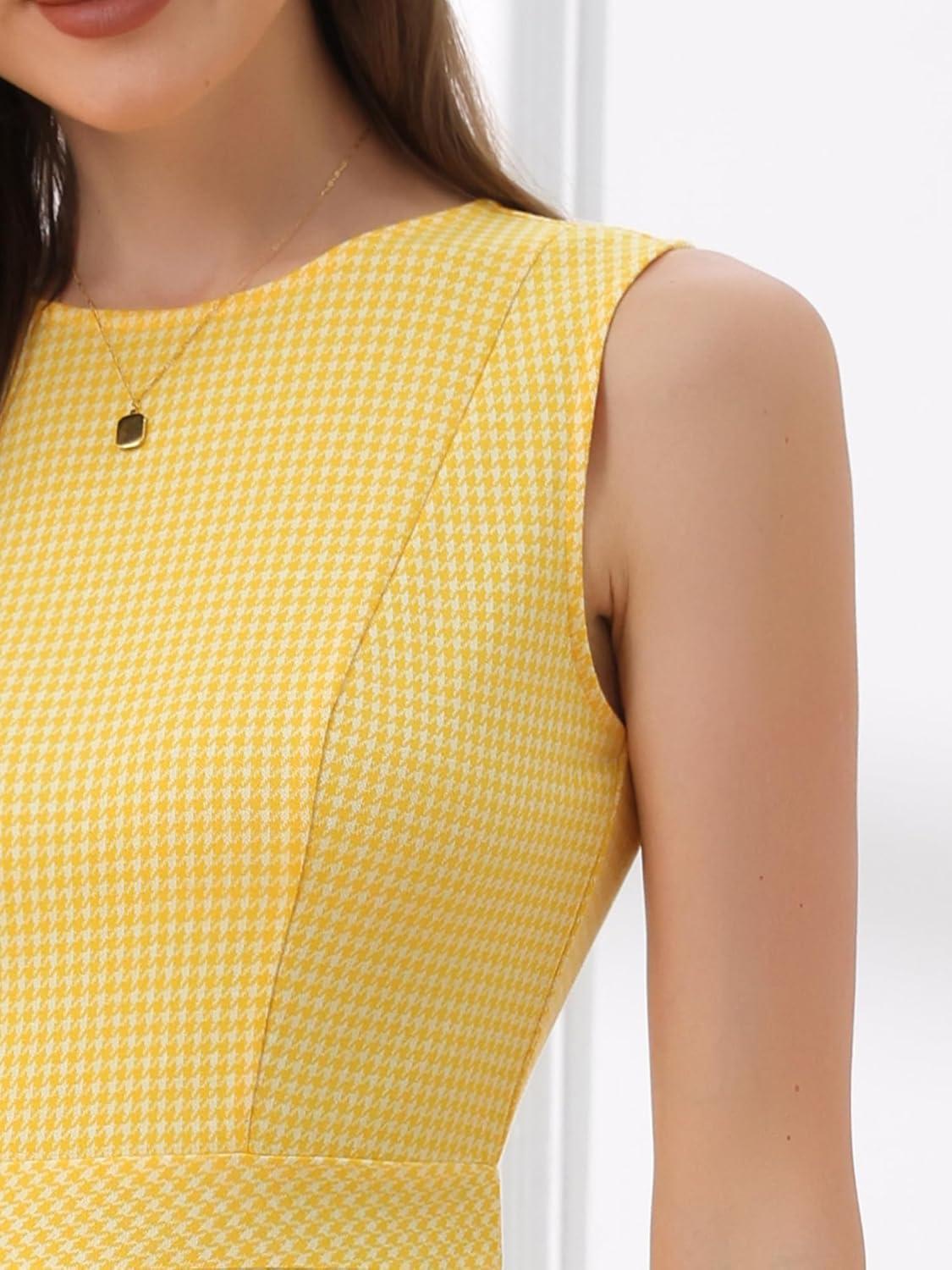 imageAllegra K Womens Plaid Dress Sleeveless Fit and Flare Houndstooth Work DressesYellow
